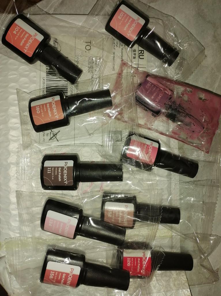 Посылку получила. Упакована хорошо. Каждый лак упакован в отдельный пакетик. Вот только в одном плохо закрутили крышку перед упаковкой и он весь вылился. По кучеству пока ничего не могу сказать, надо пробовать. Цвета неожиданно яркие, хотела наоборот поспокойнее. Будем пробовать.