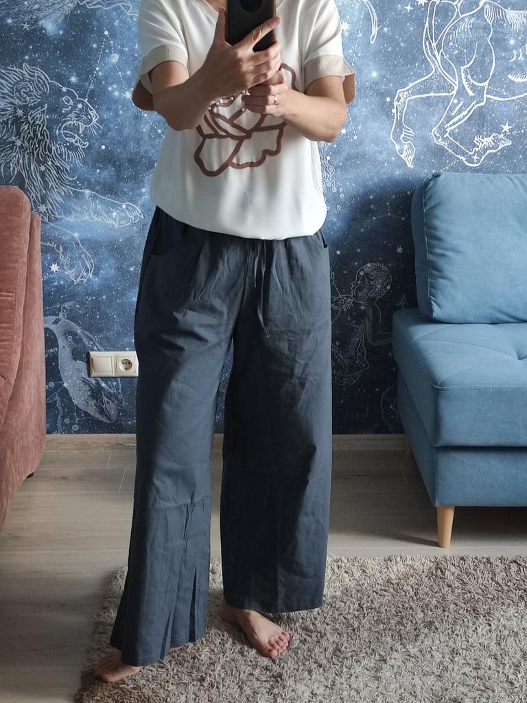 Больше не буду покупать одежду в Джум. Второй раз и последний. Лен не воняет нефтью. Ткань не должна светиться как марля. Размер не подошёл- как всегда обман между фото и реальностью. Короткие и гораздо менее широкие. Сэкономили на ткани как и всегда. Больше я не верю в честность китайского текстиля!