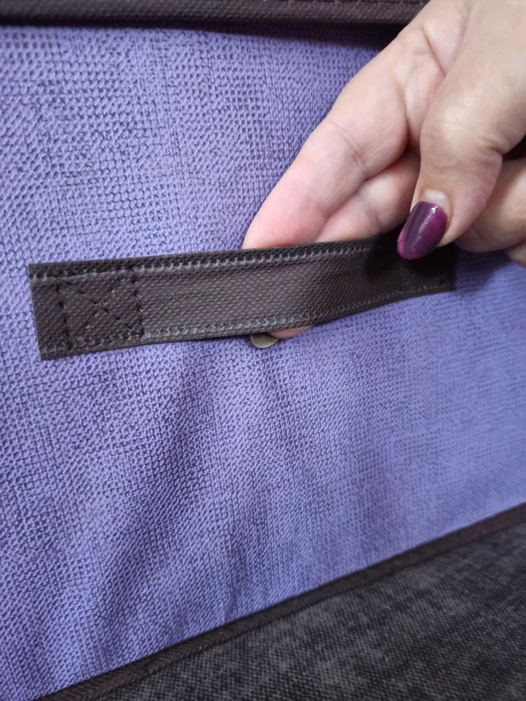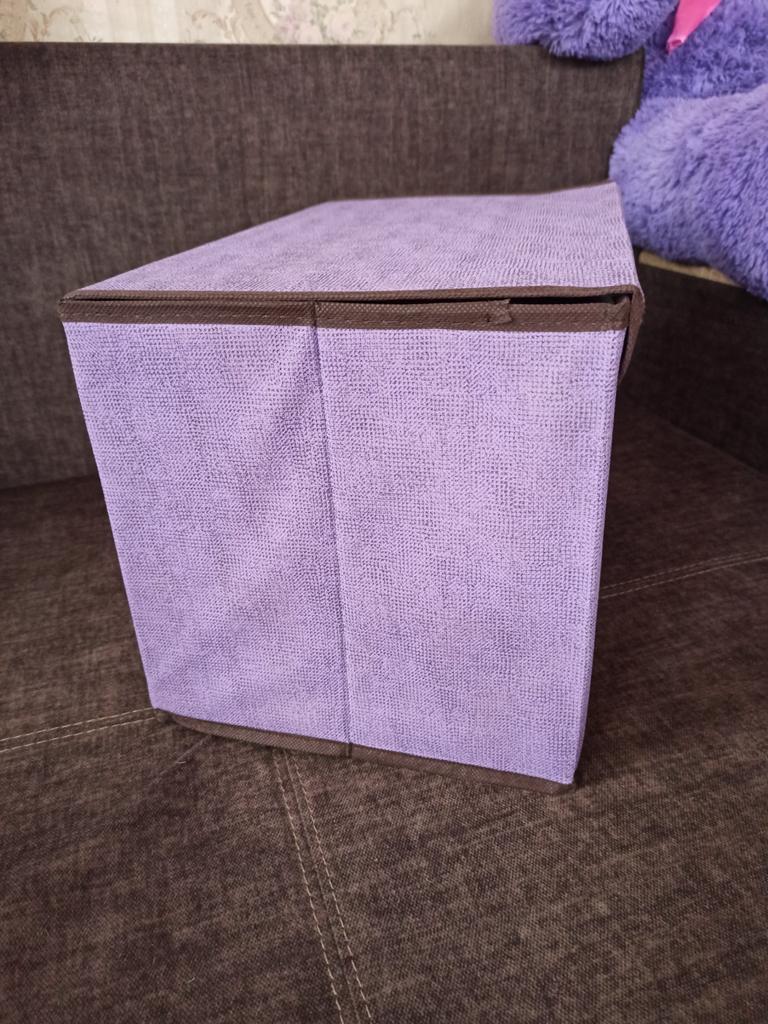 Коробка - органайзер для хранения обуви или небольших предметов. Размеры заказывала L ширина 36 см, длина - 24 см высота - 24 см. но есть и другой размер, поменьше. Цвета предоставлены разные, у меня фиолетовый. Органайзер удобно использовать для хранения одежды, белья, детских игрушек, аксессуаров гардероба и других вещей. Органайзер изготовлен из флизелина - дышащей ткани и картона. Если вам понадобится его сложить, это очень легко сделать, в сложенном виде органайзер занимает мало места. Очень удобен в домашнем использовании: игрушки, вещи или любые другие предметы всегда будут в порядке и у вас под рукой. Данная модель накрывается крышкой, которая фиксируется с помощью липучки, также есть крепкая ручка. В сложенном виде сумка очень компактна и занимает мало места. Красивая и практичная в использовании. Коробка понравилась к покупке рекомендую.