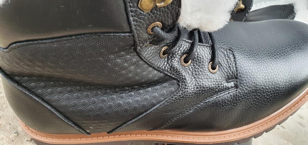 Зимние ботинки. Материал как по мне дермонтин тонкий, или может настоящая кожа из очень молодого телёнка, ну реально очень тонкая, мех с натуральностью ничего общего не имеет, или просто у производителя искуственные овцы. Подошва мягкая, уверен что быстро сотрётся. По размеру вообще пролёт, брал 48 и пришёл 48, но чучуть на пару сантиметров меньше, может нужно в воду поставить что-бы разбух?, может кто подскажет?