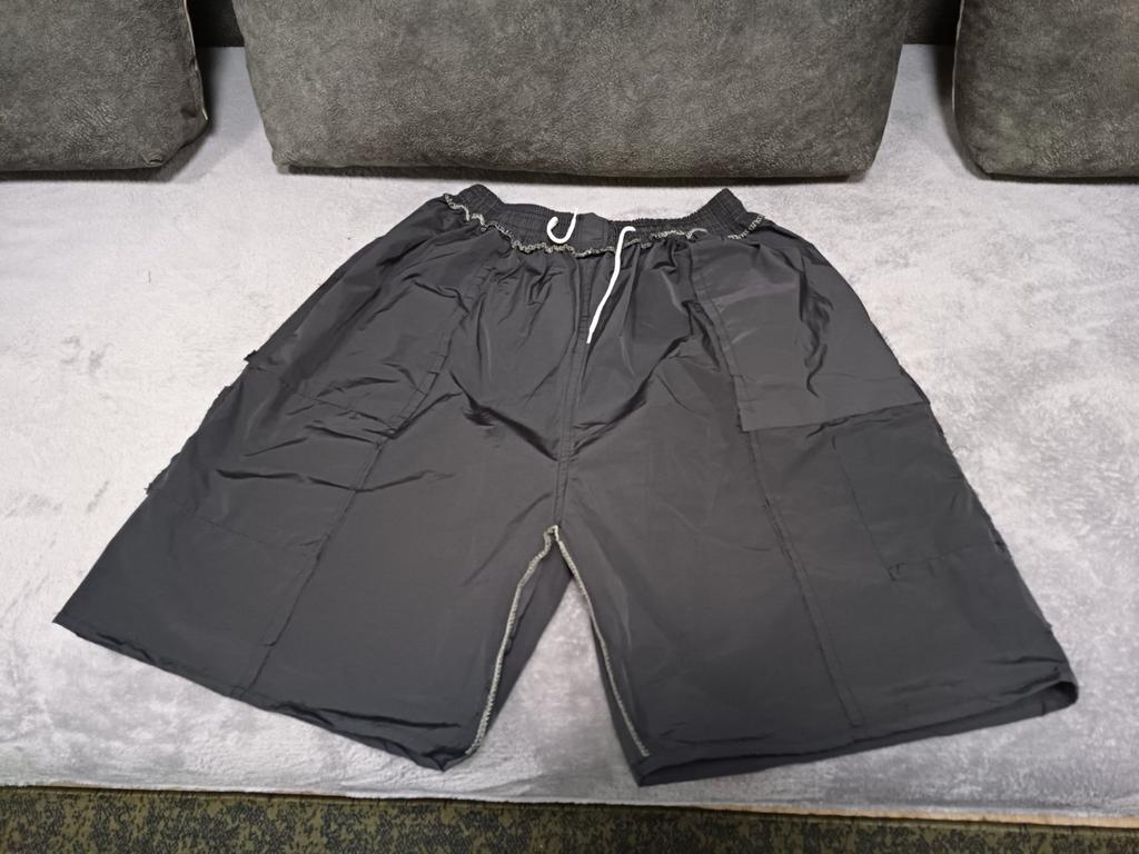 Мужские свободные шорты, полиэстр, ткань тонкая но плотная, за счёт широкого фасона в них не жарко, по бокам имеются карманы, не очень глубокие, обычные, спереди на штанинах есть карманы, но справа карман меньше а слева больше, сзади карманов нет, пошив не идеальный, есть торчащие нитки и не все швы внутри оверложены, этикеток никаких нет, только на пакете наклейка с указанием размера, размер более менее совпадает с представленной таблицей, я заказывала XXL в тёмно синем цвете, замеры приложила, смотрите для сравнения, резинка на талии тянется максимум до 100 см, думаю этот размер будет комфортен мужчинам с объёмом талии 80-90, у моего 84 см, больше будет туго. Подобрав правильный размер шорты смотрятся очень даже хорошо, моему мужу понравились, соотношение цена качество, то товар хороший.