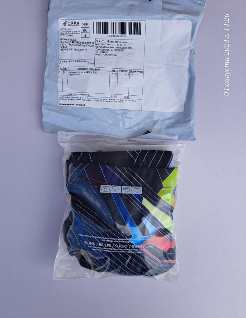Пять заказов приехали в одной посылке. Посылка не повреждена, всё цело. Каждый из пяти предметов, упакован отдельно. Спасибо службе доставки и почте России! Плавки СУПЕР 👍🏻👍🏻, пошиты качественно, уже прошли испытание триатлоном! Единственное что, я немного ошибся с размером. Но теперь есть повод, скинуть пару кг. p.s. Заказал у этого продавца ещё одни плавки, только другой расцветки и побольше размер XXL.