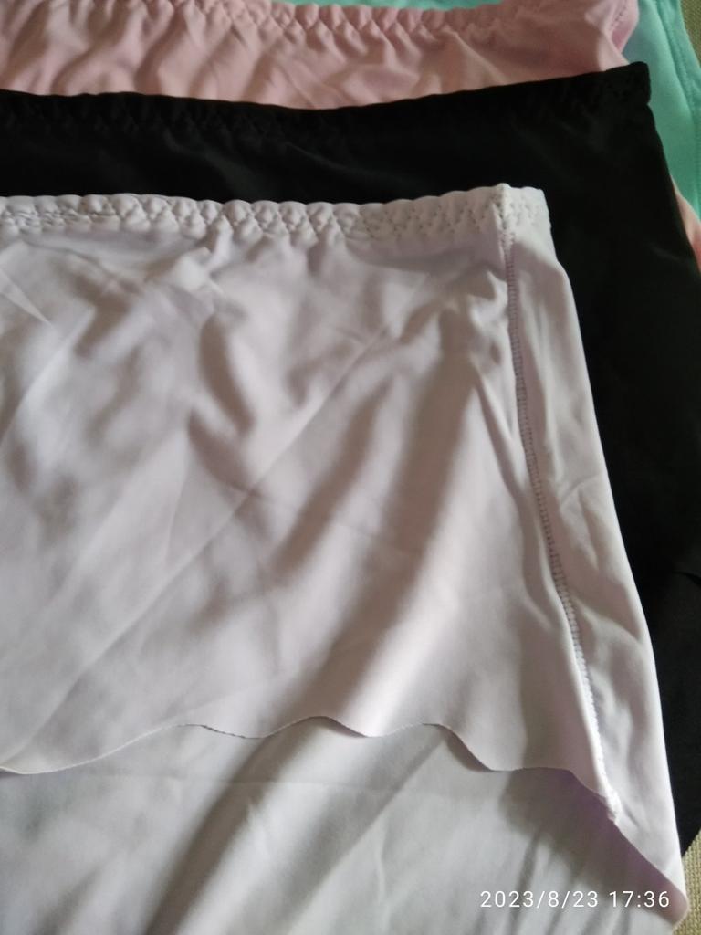 Комплект трусиков шел долго,больше месяца. Даже прислали скидочный 5% купон в качестве извинений . Верх обработан не так, как на картинке ,из бесшовной обработки- только низ трусиков,и то,не ровной, а волнистой линией, в примерке волны подворачивались внутрь,может срез под одеждой выделяться. И этикетки только на двух единицах . И вместо телесного прислали белый, остальные цвета-как на картинке . Чёрные чуть плотнее ,остальные тоньше . Не оправдали ожидания. Одну звезду сняла ещё . В предыдущих отзывах товар у покупателей соответствовал заявленному, там- таки бесшовные, и в резинке, и красивый низ. Расстроилась. То ли качество изменили, то ли подменили товар . Обидно. На фото всё видно. Дополняю: вернули стоимость заказа полностью, так как товар не того качества обработки. Спасибо.