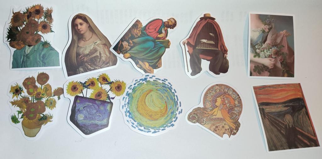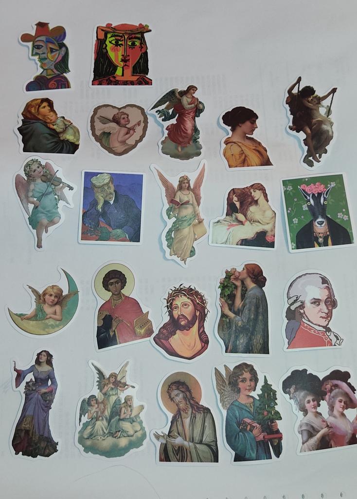 Наклейки на тему классических полотен. Пару штук наклеили на телефон. Дочка рисует и ей очень понравилось. Наклейки небольшие, подойдут для телефона , ноутбука, альбомов.
