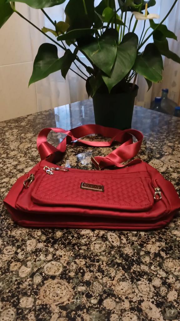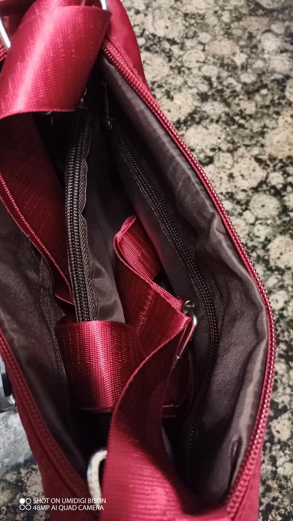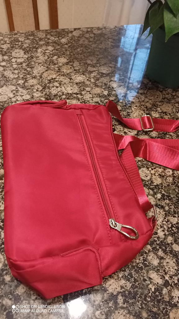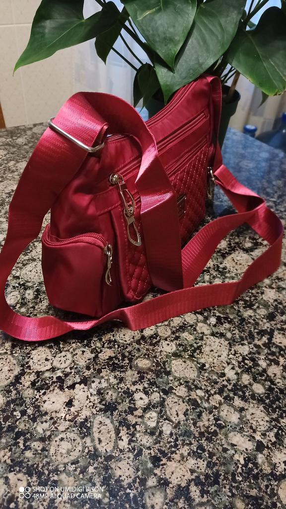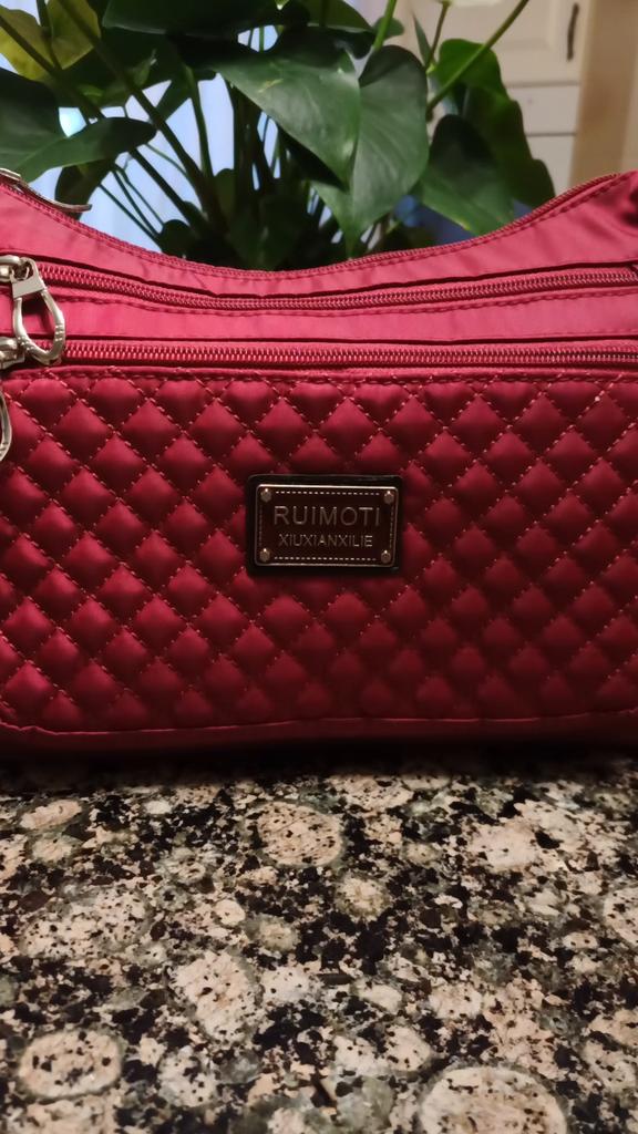 🍁Сумочка просто супер👍Лёгкая красивая, цвет цвет спелой вишни, немного с малиновым оттенком, спереди на сумочке карман большой на молнии с драпировкой ромбик накладной и сверху лейбл с названием фирмы, а над ним внутренний карман на молнии, карманы глубокие, сзади сумочки тоже есть карман на молнии , внутри сумочки на стенке 2 кармана без молнии, для мобильника или карточек, на другой стенке есть карман на молнии , посредине карман на молнии для документов, снаружи по обеим бокам кармашки на молнии небольшие и два отделения, ремень красивый прочный, отливает атласом, чуть светлее цвета сумочки красивый и яркий, ремень не отстёгивается, есть регулятор длинны. Внизу на сумочке ножек нет, материал крепкий, водоатталкивающий...Конечно внутри сумочки нашла небольшой брак подклад не пришит или не приклеен , это мелочи, сделать можно, продавцам, производителям, нужно проверять на наличие браков и присылать более качественный товар.В целом сумочкой очень довольна, красивая, стильная, маленькая и компактная, много веще нужных можно положить. Данный товар и продавца рекомендую👍 Благодарю Joom, продавца и все службы за доставку посылки 10+🌹🌹🌹
