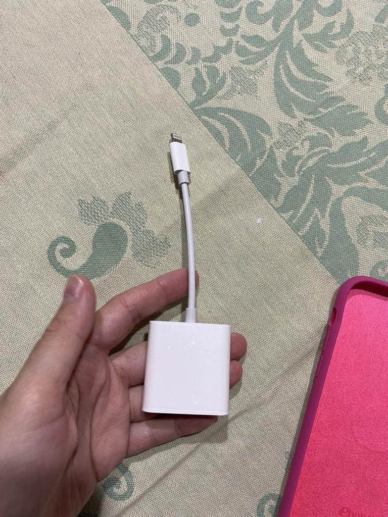 Адаптер для чтения карт памяти на айфон.Пришел целый,на деле еще не пробывала,шел очень долго 🙄