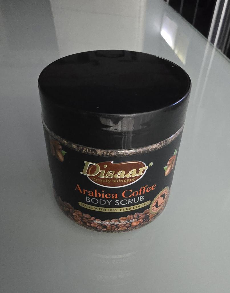 Натуральный кофейный скраб для тела🩶 Вкусный кофейный запах! Объем 200 мл, ёмкость полная. Упакован был отлично. После применения кожа более гладкая и нежная!