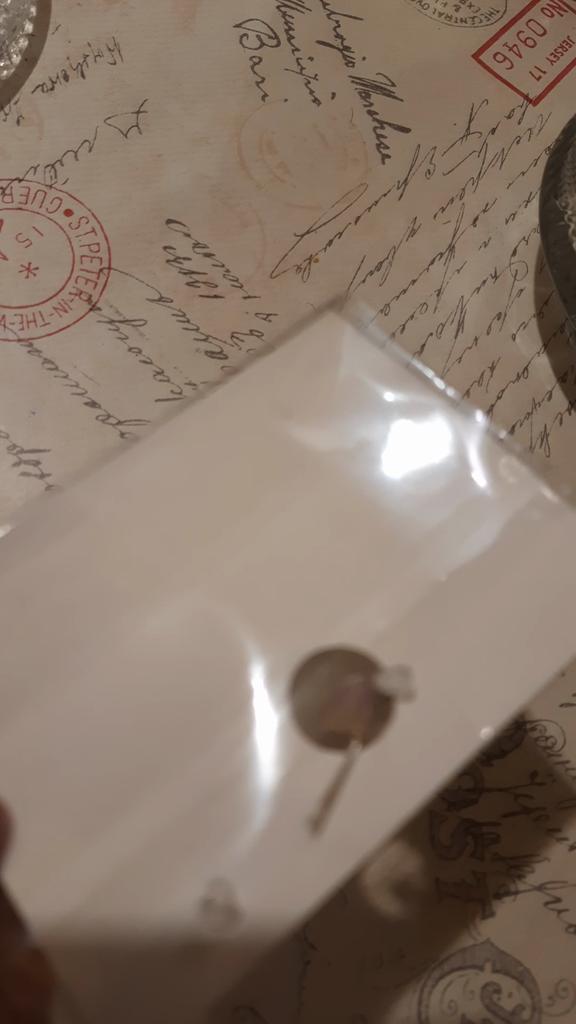 Одна серёжка раскололась, обе были немного согнутые, но это больше претензии к доставке. Видимо, случайно мне положили три заклёпки, вместо двух. Сами серёжки выглядят не так ярко, как на картинке. Очень хрупкие и матовые