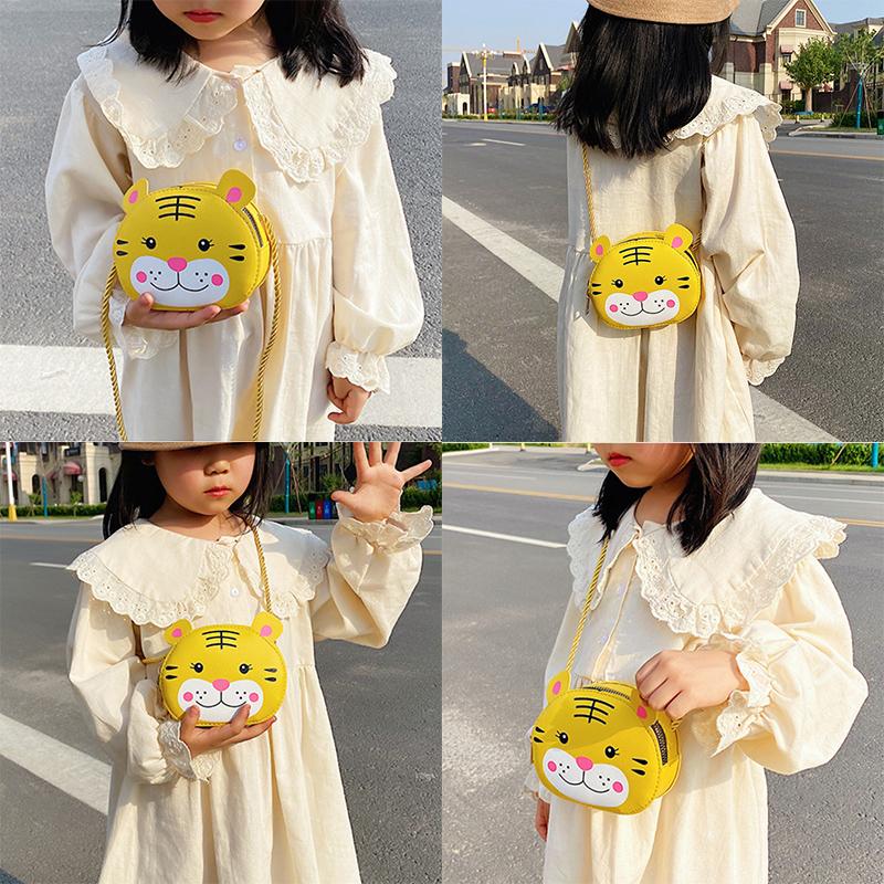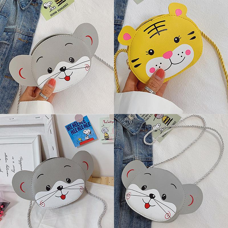 Модная мультяшная сумка через плечо с животными для девочек, круглая сумка через плечо на молнии