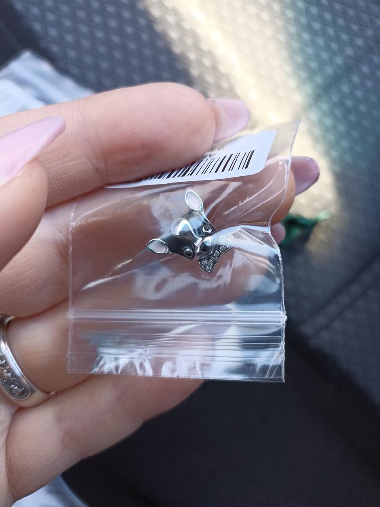 Шарм для браслета в виде головы собачки. Доставка с 21.07. по 09.08.2021 в Минск, трек не отслеживался в РБ. Норм качество, к браслету подходит, шарм без брака 🐊. ""но шарм без пробы 🐢 и без дырочек сзади на бантике.