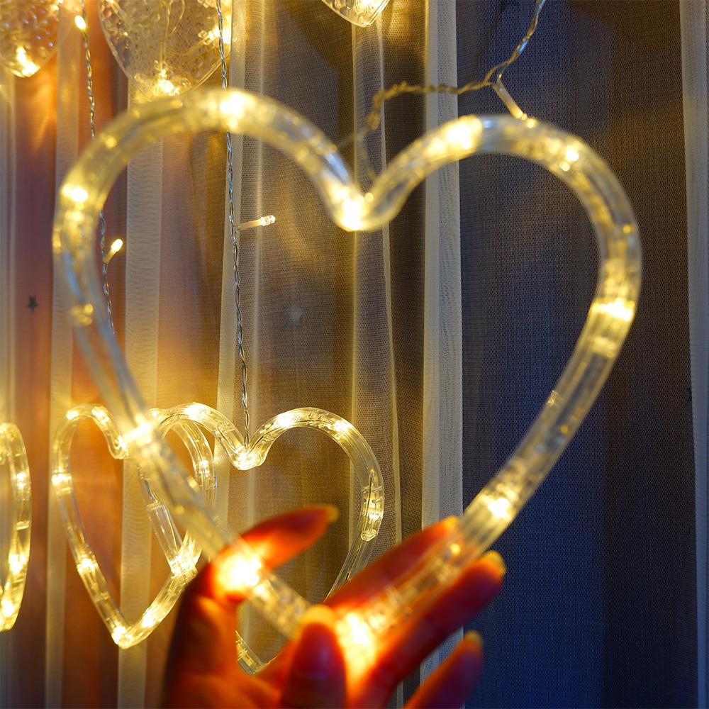 Светодиодные занавески с сердечками, гирлянды, рождественские гирлянды, гирлянды, 8 режимов, вечерние на день Святого Валентина, домашняя свадьба, новогодние украшения