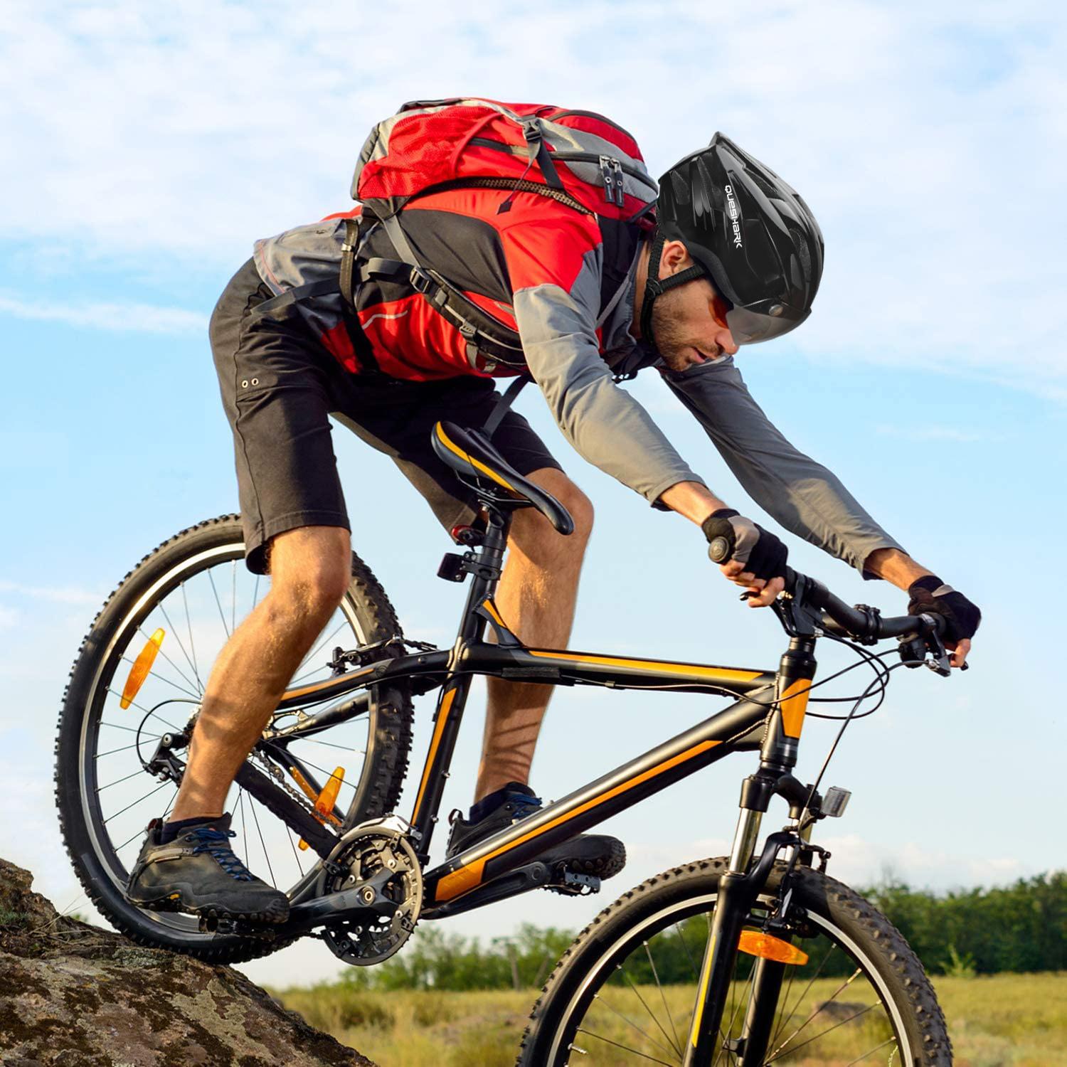 2. Съемные магнитные очки - специальный велосипедный шлем с уникальным дизайном, магнитный защитный экран серого цвета может использоваться в качестве солнцезащитных очков обеспечивает защиту глаз uv400 и отлично блокирует сильный ультрафиолетовый свет / пыль / ветер / песок от вашего лица. легко переворачиваться или снимать одной рукой при езде на велосипеде, удовлетворяет ваши 3 потребности в ношении - очки вверх, очки вниз и без точек. (ваши собственные очки также можно носить под очками)