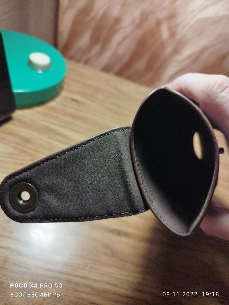 Вроде кожа, с подкладкой, только не знаю к какому телефону подойдёт этот чехол кобура, для "Samsung Galaxy Note 9" он великоват, на фото "Samsung Galaxy M21 6.4", с похожими размерами.