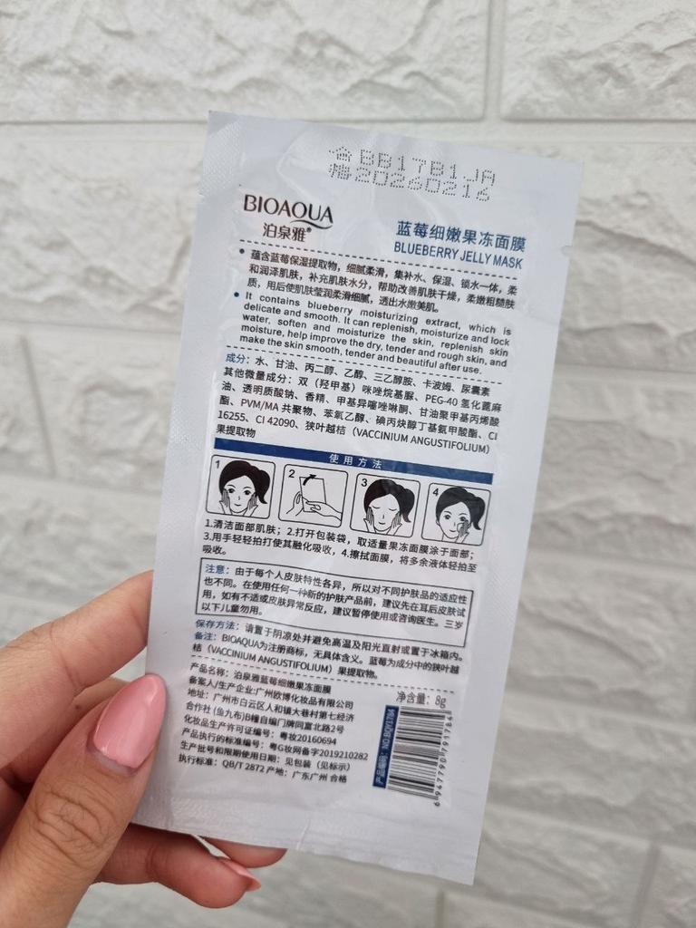 Ночная маска Bioaqua Blueberry Jelly Mask понравится всем ценителям эффективного ухода за кожей лица. Имея необычную желеобразную консистенцию, такая маска прекрасно справляется с омоложением кожи, подтягивает, увлажняет ее, а также борется с постакне и воспалениями. Черника богата витаминами и антиоксидантами, основной из которых — пигмент антоциан, благодаря чему она активно применяется в косметологии для зрелой кожи. Она подарит вашей коже вторую молодость и закрепит уже имеющийся результат. В составе маски Bioaqua содержится черника, а всем известно, что она богата антиоксидантами и гиалуроновой кислотой. Именно эти составляющие осуществляют борьбу со старением и пигментацией. Преимущества черничной маски: Маска улучшает общий иммунитет кожных покровов Помогает уменьшить отеки, убирает мелкие морщинки. Обладает лифтинг-эффектом Регулирует сальные железы, придавая коже матовость и снимая воспалительные процессы. Рекомендую. Будьте всегда красивыми.