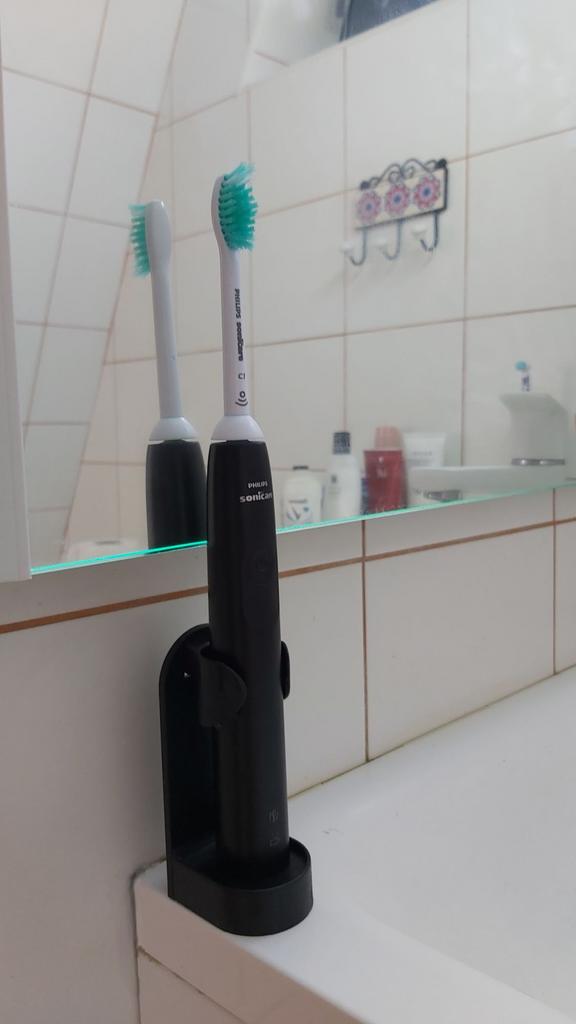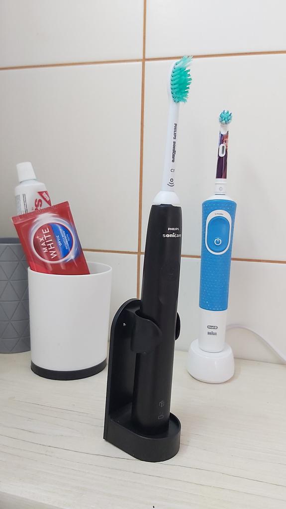Держатель для электрической зубной щетки Хороший держатель! Купила для наших с мужем зубных щёток. Собственно рассказывать в общем то не о чем, приходит сам держатель и липучка на которую он крепится. Фиксируется надёжно. Мне нравится результат. Не успела заснять в том виде, в котором пришёл товар, так как муж сразу же приклеил на стену. Заказ шёл чуть больше месяца. Всем добра и отличных покупок 🛍️🥰