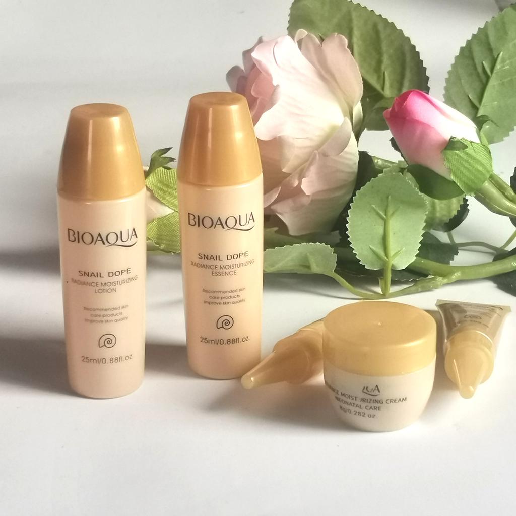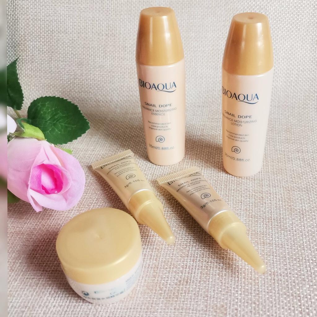 🐌Мини набор уходовых средств с муцином улитки от BIOAQUA🐌 🐌Пришел на подложке в коробке. Коробка запаяна в слюду. При доставке помялась, но она мне и не нужна. Для подарка, лично мое мнение, этот набор не подходит, маленькие объёмы. А вот как пробник, как дорожный вариант, чтобы не тащить кучу банок-склянок, просто идеальный. 🐌Сроки годности и инструкция напечатаны на коробке. Перевод не проблема в наше время. Даже без перевода понятно, что зачем использовать. 🐌В набор входит :тонер(25мл), эссенция (25мл), крем для глаз(3г), крем для лица(8г), бб-крем(3г). 🐌Все продукты направлены на увлажнение кожи. Они работают. Приятный запах. Подходят для все типов кожи(про тест перед использованием, не забываем) Важный момент, что подходит и для молодой кожи. 🐌Все заняло место в косметичке, немного, хочу заметить. Покупкой довольна. От души советую средства бренда BIOAQUA. Они не только доступны по цене, но и не уступают дорогим аналогам. #дорожныйнаборкосметики#BIOAQUA #уходзакожей#улиточныйнабор