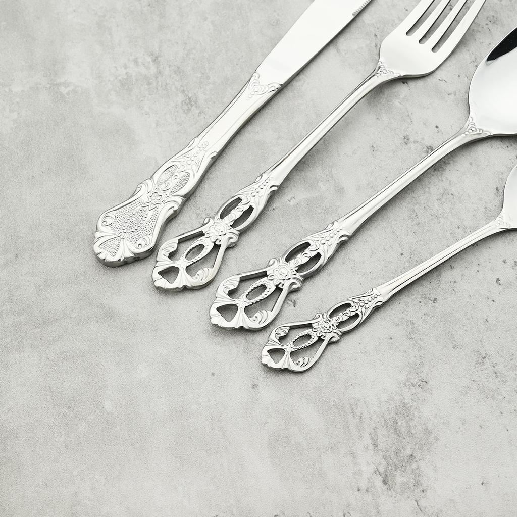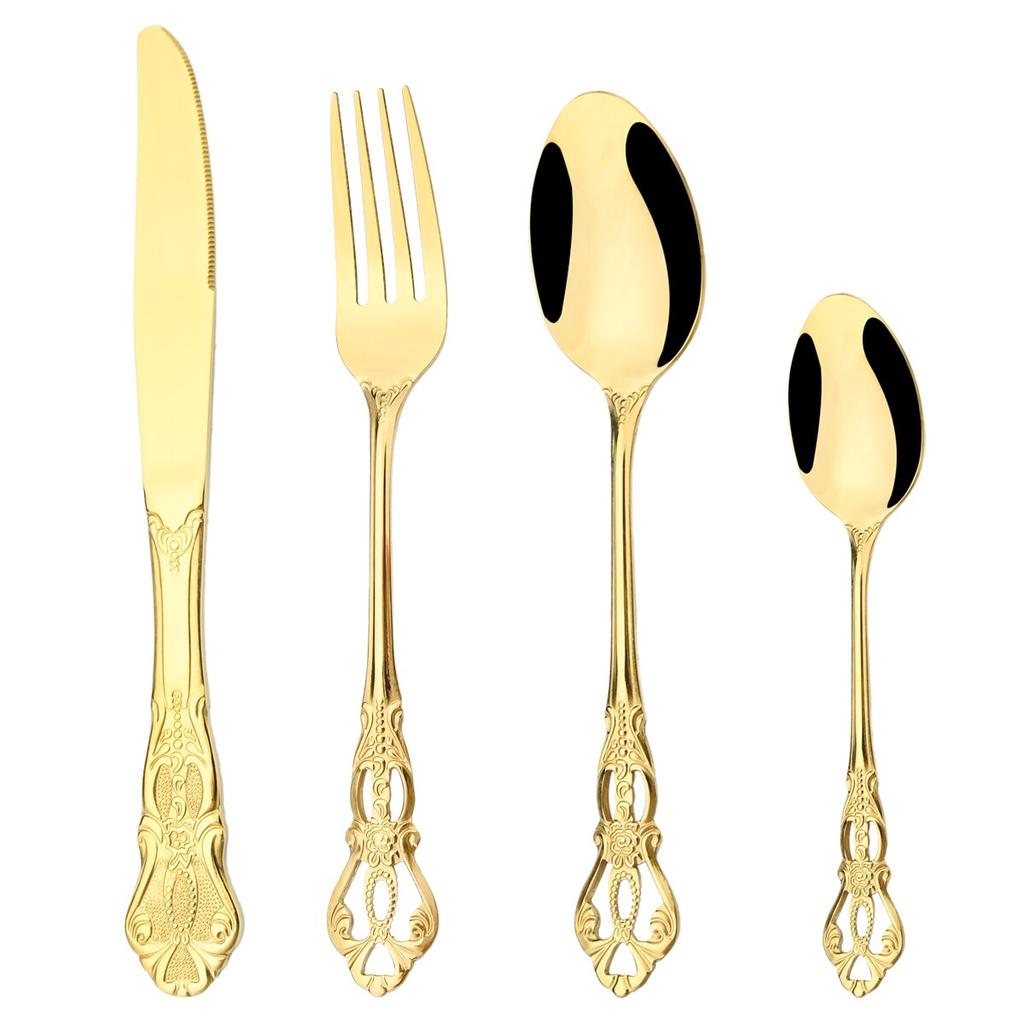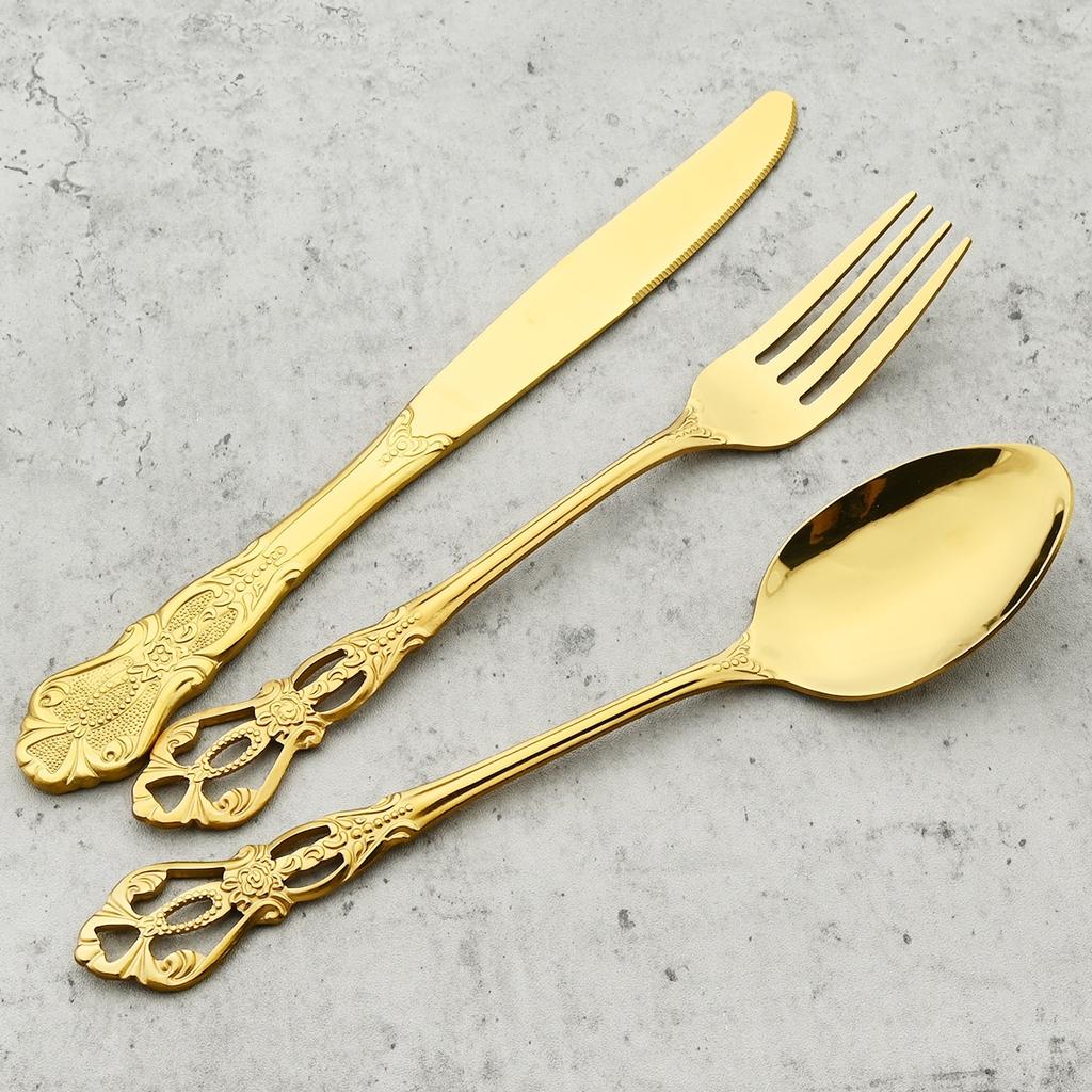 Винтажный полый золотой набор столовых приборов, посуда из нержавеющей стали, западный нож, вилка, ложка для льда, набор посуды, столовое серебро для свадебной вечеринки