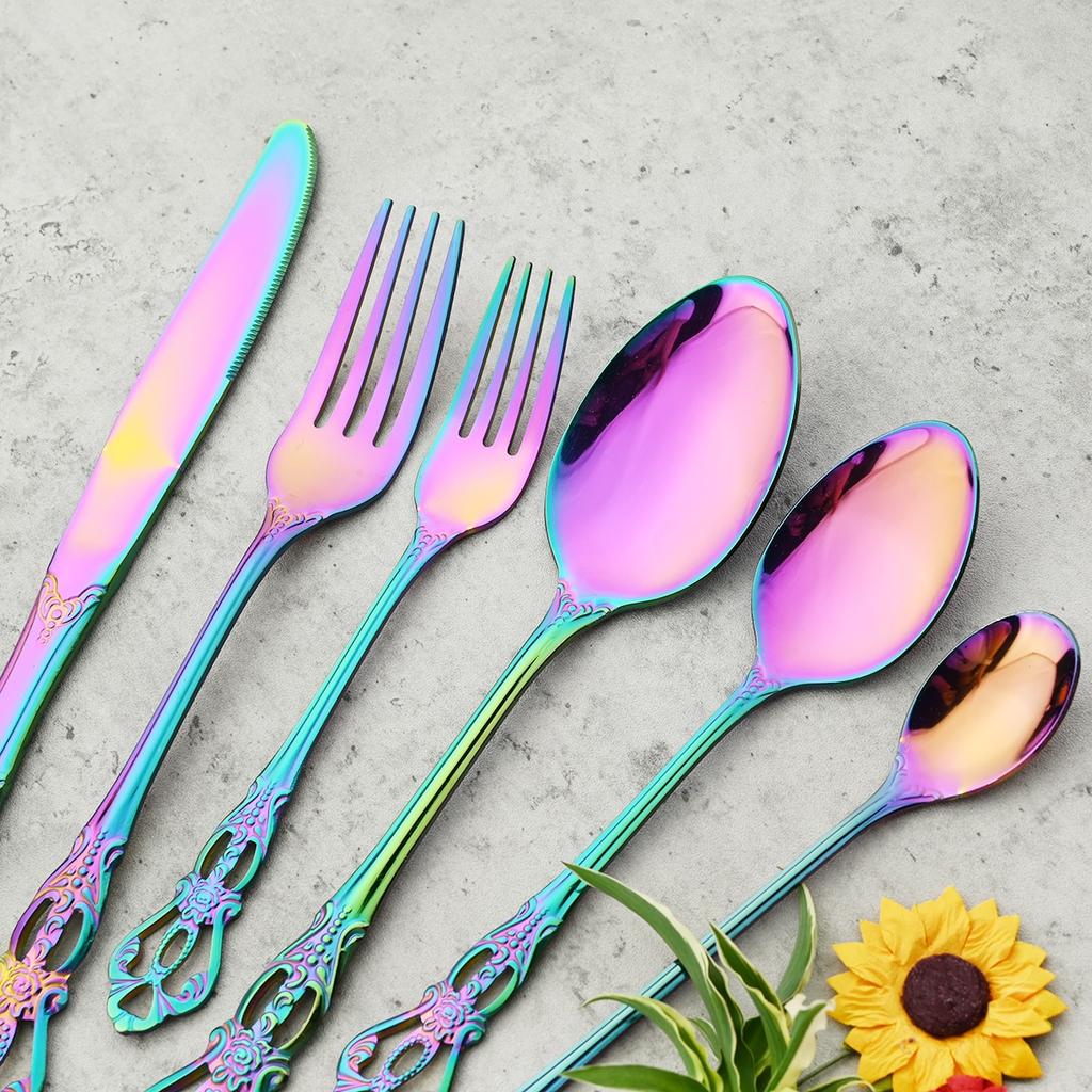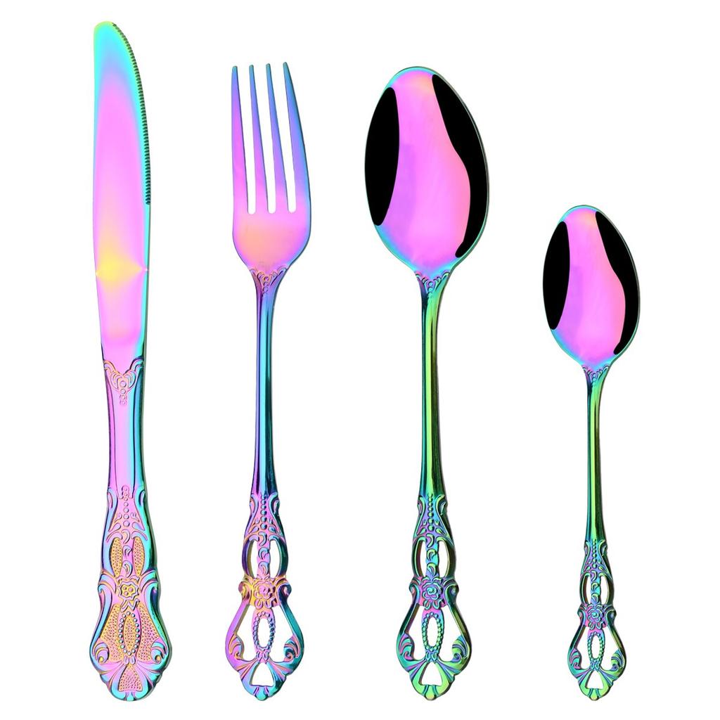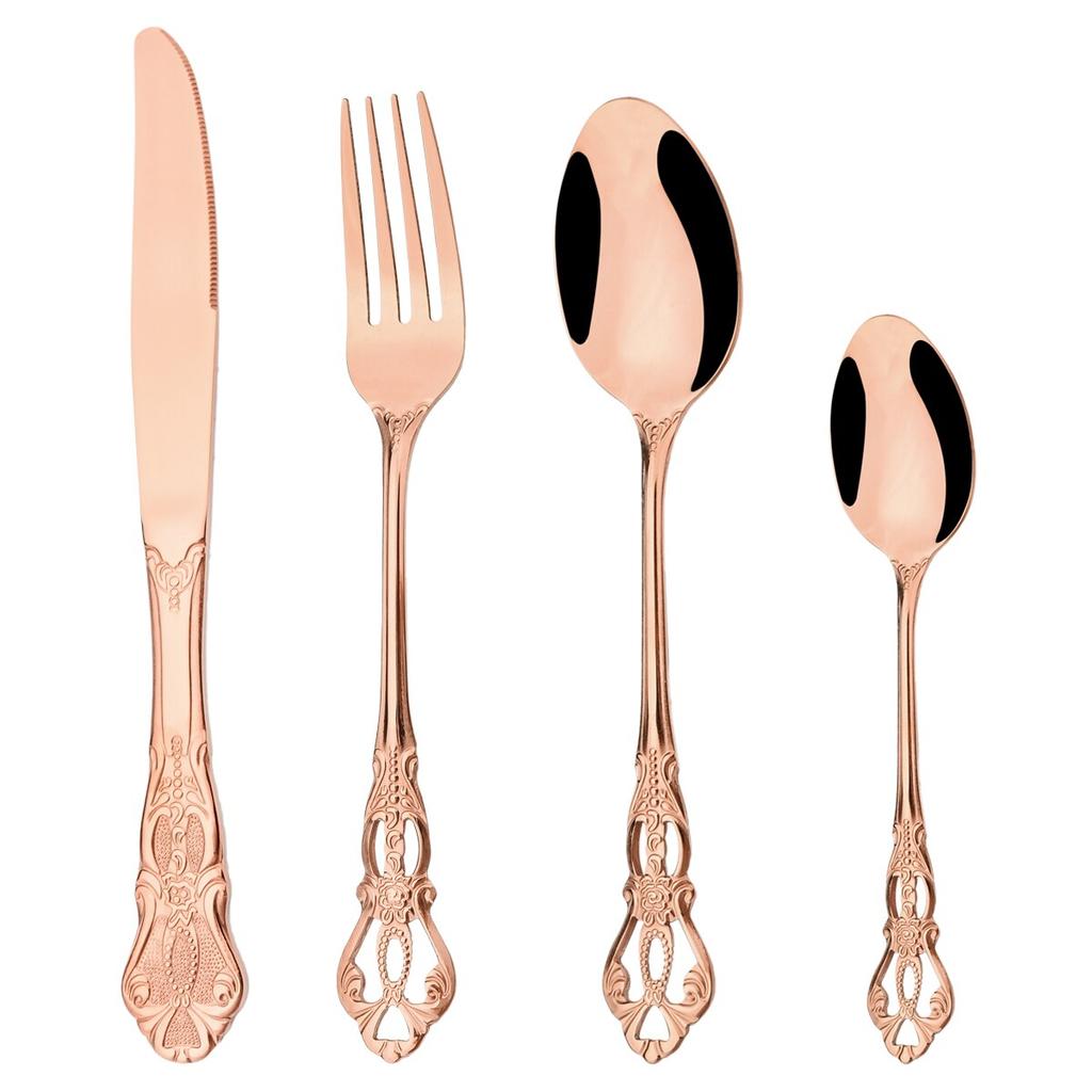 Винтажный полый золотой набор столовых приборов, посуда из нержавеющей стали, западный нож, вилка, ложка для льда, набор посуды, столовое серебро для свадебной вечеринки