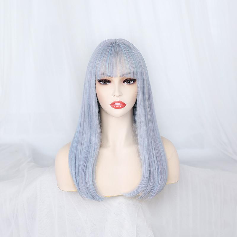 Bybrana У женщин часто прямые волосы с челкой, небесно-голубые длинные волосы и синтетические волосы.