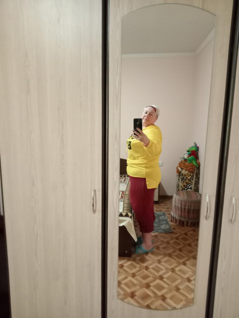 Отличная футболка, на мой 48-50 размер оверсайз, как я люблю, рукава мне по длине нормально, в отзывах читала что коротковаты. Мне футболка понравилась, яркая, летняя, супер! Жаль карманов нет. Спасибо Джум! 👌🥰🥰 )) никаких опознавательных знаков о размерах не нашла, просто на пакете ХХL