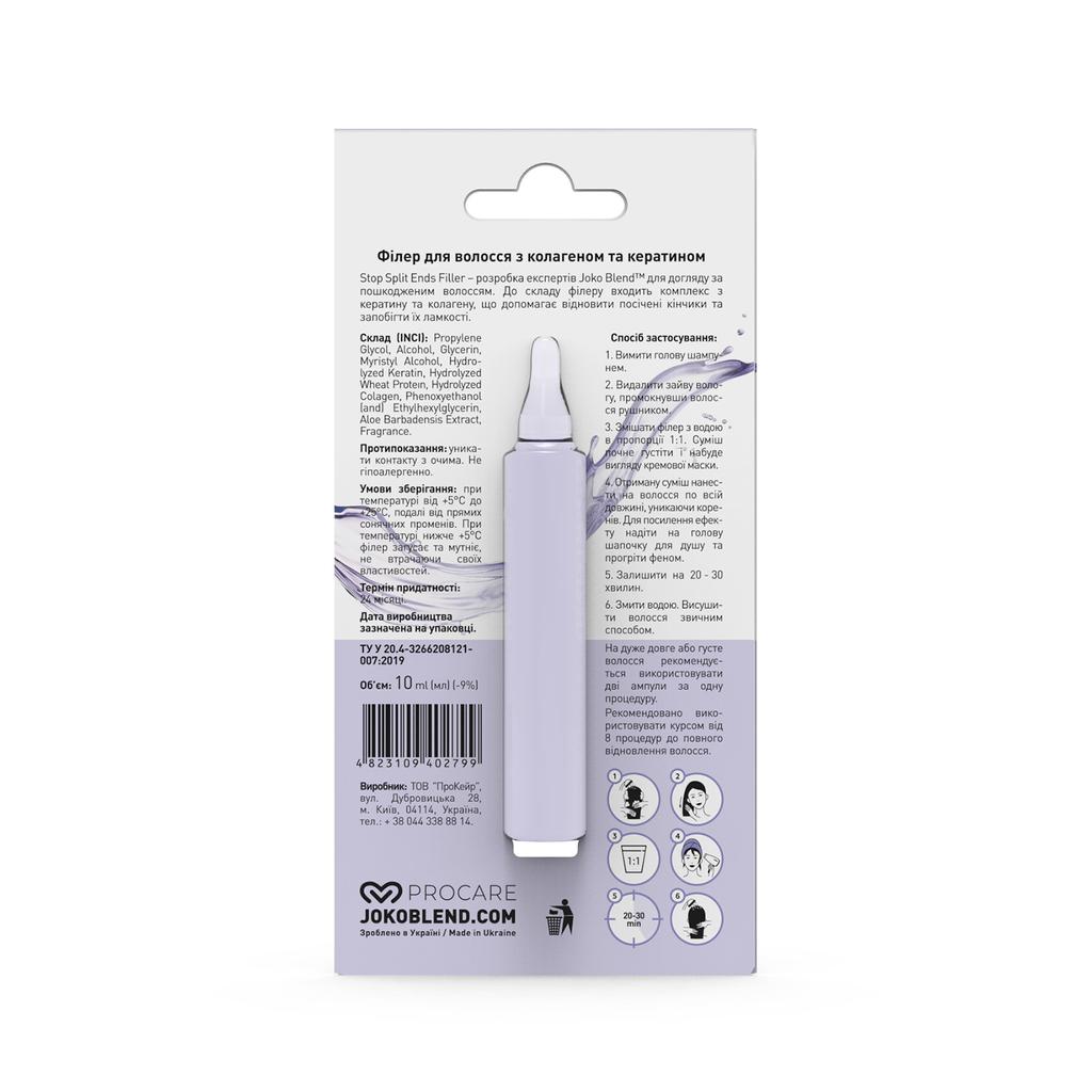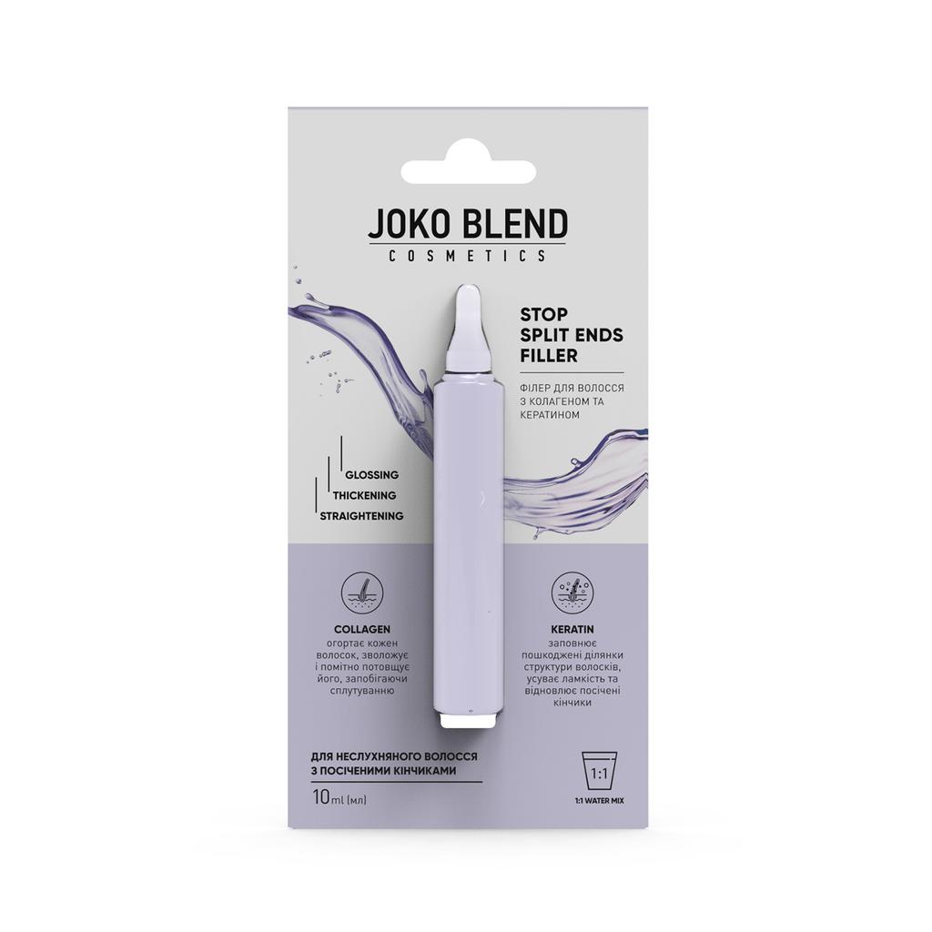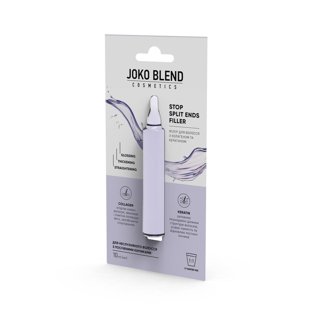 Stop Split Ends Filler - разработка экспертов Joko Blend ™ для ухода за поврежденными волосами. В состав филлеров входит комплекс из кератина и коллагена, который помогает восстановить секущиеся кончики и устранить их ломкость. Активные компоненты заполняют поврежденные участки структуры волос, увлажняют и заметно утолщают их, предотвращая спутывание.