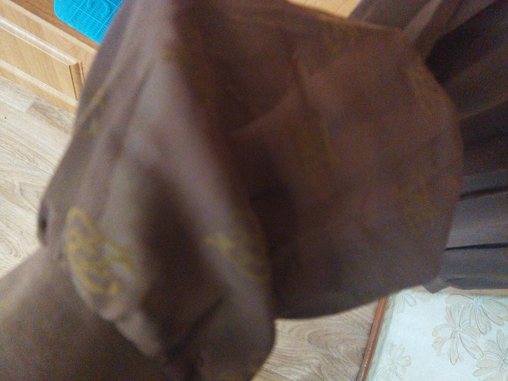 Тотовар шёл чуть больше месяца. Кофточка сшита аккуратно, швы ровные. Материал синтетика, на картинке основа выглядела как трикотаж. На картинке цвет шоколад, в реальности темно коричневый. Брала на подарок. Немного разочарована. Выглядит мрачно.