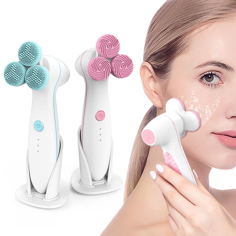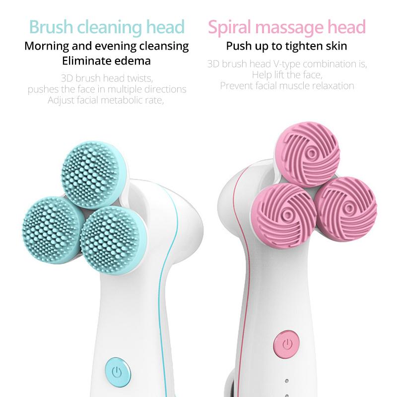 3D электрическая щетка для очищения лица, водонепроницаемая мягкая силиконовая щетка для мытья лица, устройство для ухода за кожей, массажер для лица, глубокая очистка пор