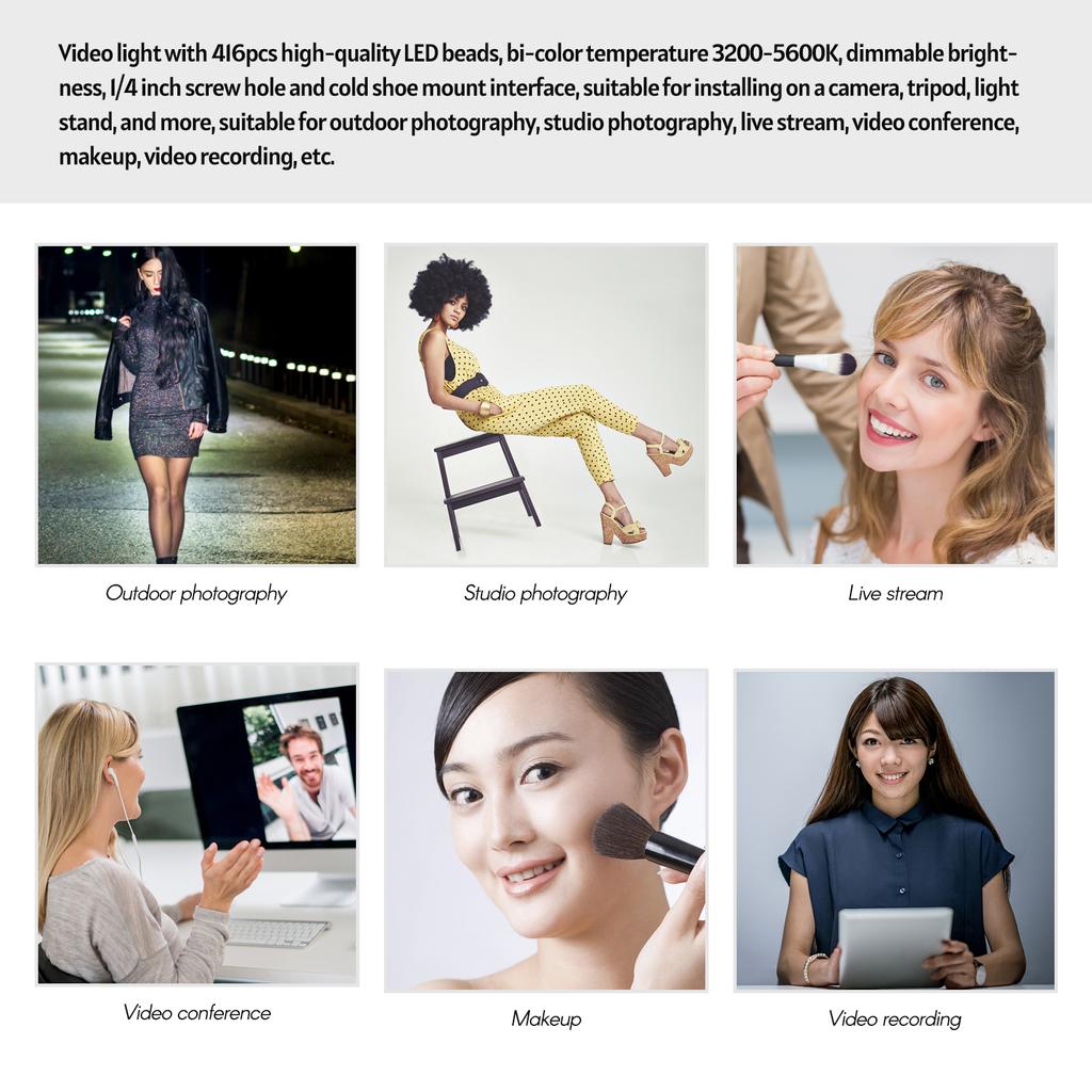 [Отличные характеристики освещения] С 416шт очень яркими световыми бусинами, высокой яркостью до 3600Lux@1m, эта световая панель может предложить яркий, ровный и эффективный источник света для вас; CRI 95, очень близко к естественному солнечному свету, может представить оригинальный цвет объектов более ярко, давая вам более четкое изображение более высокого качества.