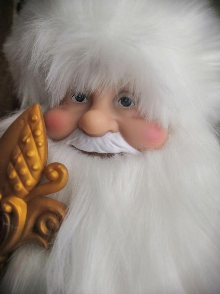 Заказала Деда Мороза. Пришел быстро и как раз вовремя (за 6 дней до Нового Года), за что большое спасибо продавцу. Дед Мороз -конфетница был хорошо упакован, в пупырчатую пленку, но, к сожалению, это не спасло от того, что посох у деда Мороза сломался (это, конечно же огорчило). Попробуем посох склеить. Сам Дед Мороз красивый, со славянским лицом, шуба у дедушки выглядит богато. Высота 45 см
