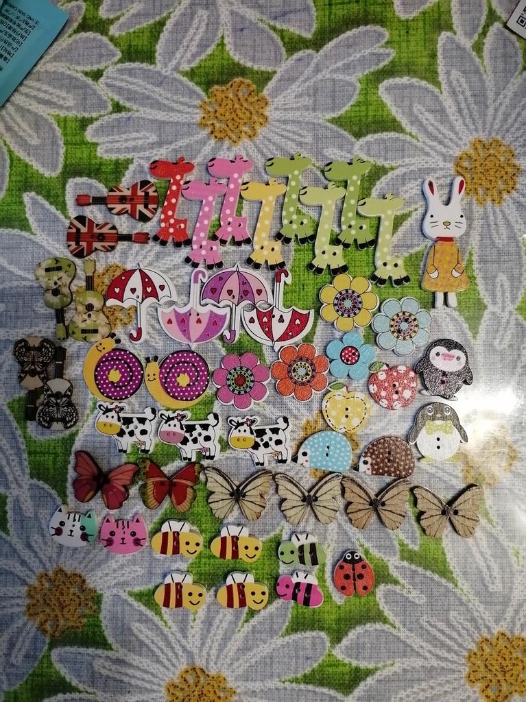 Качество, конечно, отличное, но содержание очень разочаровало. Заказывала из-за совят и котят, но... в наборе не оказалось ни одной нужной пуговицы. А одинокий зайчик, вообще, без дырочек.