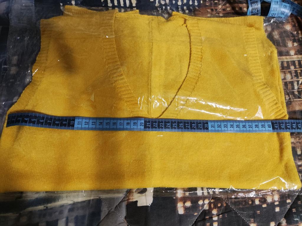 Сильно маломерит,брала для мамы она 46 носит ,жилет в обтяжку,свободный он будет где то на 42 размер,но ткань мягкая нежная,а так как водолазка получился,в общем ожидания не оправдались.,вырез не такой как на промо фото.,на ОГ 100 впритык