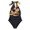 Женское бикини темно-синего цвета с глубоким v-образным вырезом на шее, цельный сексуальный купальник с открытой спиной на шнуровке, пляжный купальник для купания