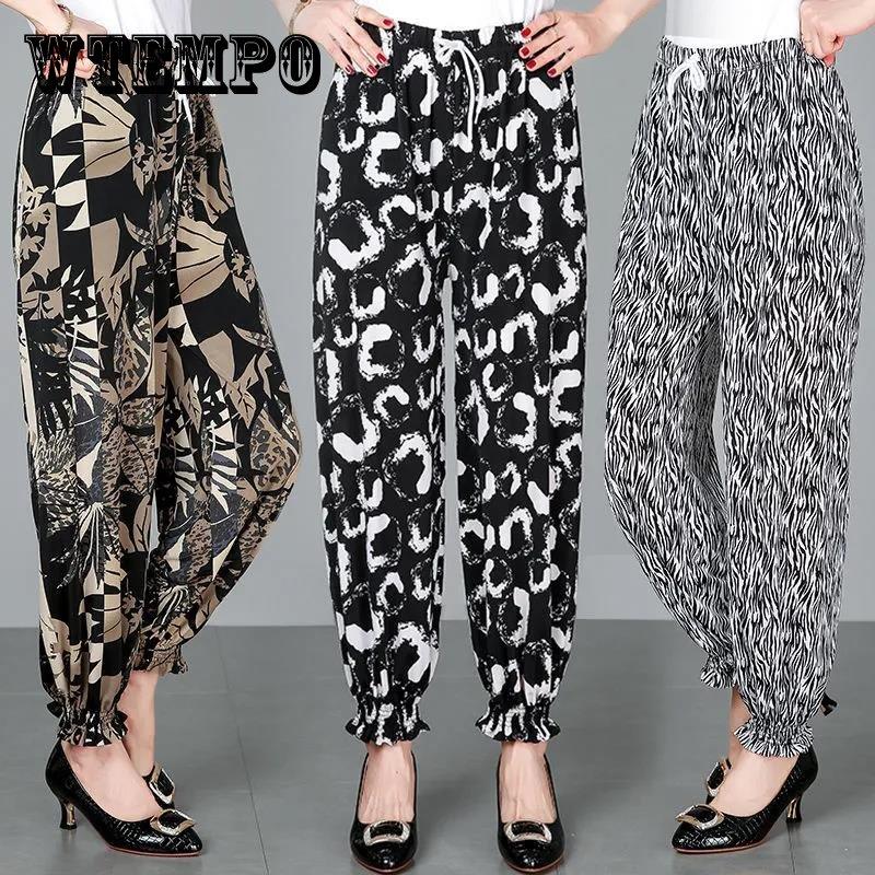 Укороченные брюки, женские летние брюки с тонкой эластичной резинкой на талии, большие размеры, брюки для среднего и пожилого возраста, шаровары