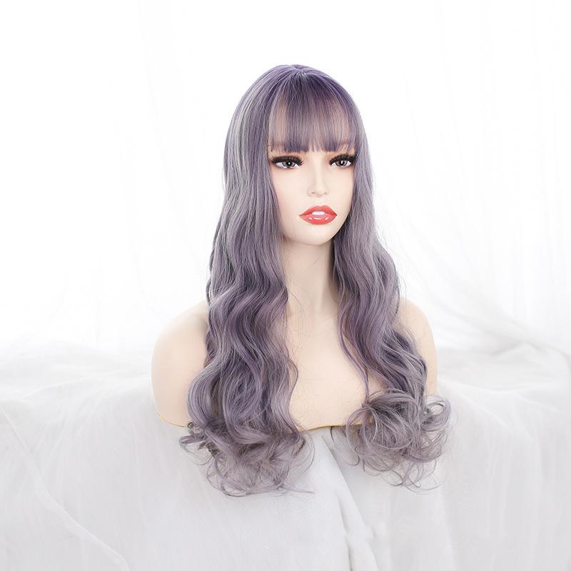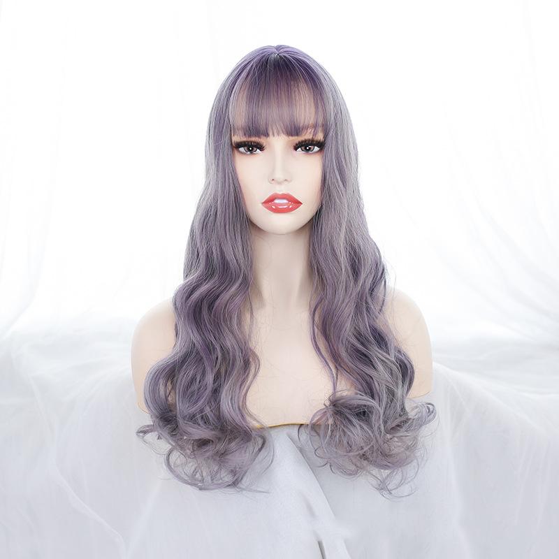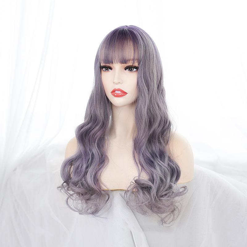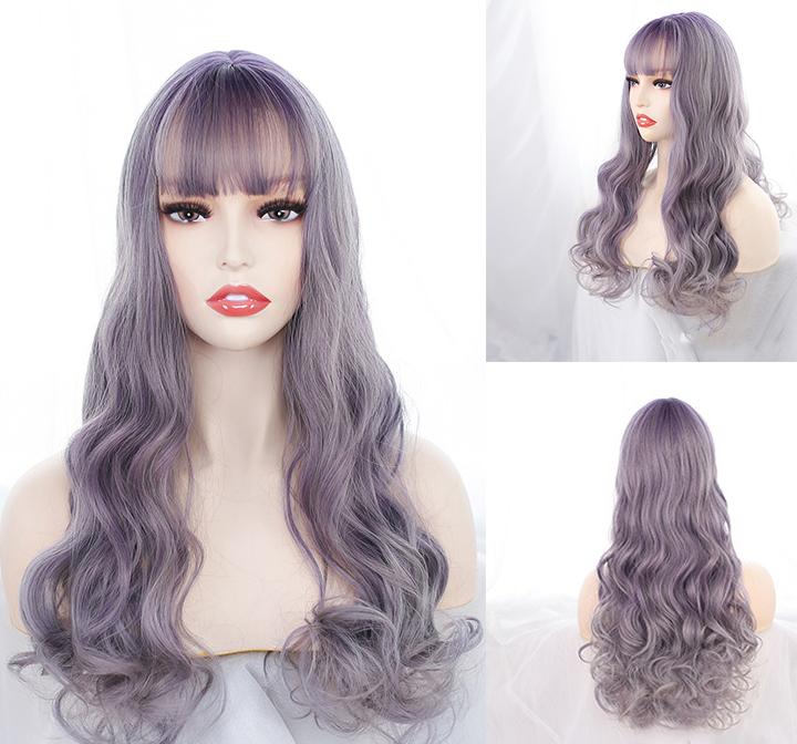 Bybrana Женщины Челка Большие волны Длинные волосы Лаванда Синтетические волосы Повседневная одежда Личность