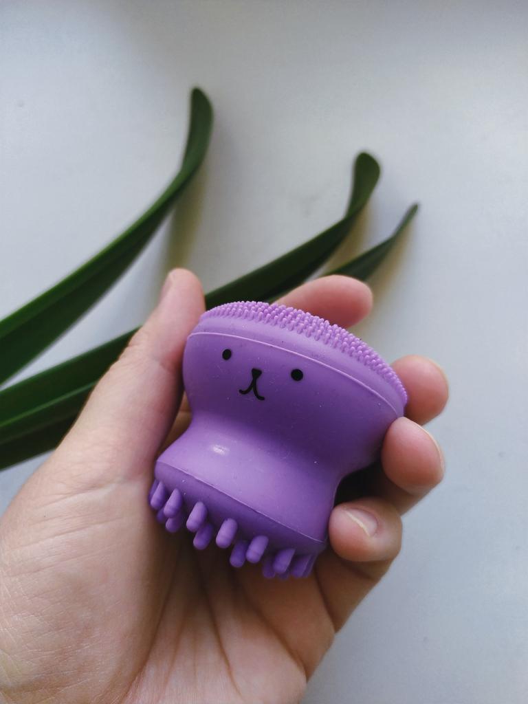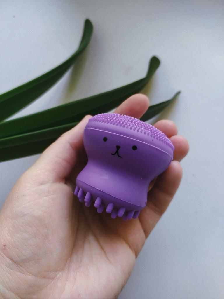 Силиконовая щёточка для лица осьминожка. Отличный инструмент для очистки кожи от загрязнений. Верхушка щеточки состоит из мягких силиконовых щетинок, помогающих бережно очистить кожу. Нижняя часть - из более плотных щетинок, её можно использовать для массажа и удаления ороговевшей кожи лица. Внутри щёточки находится губка. Она отлично пенится позволяя использовать меньше средства для умывания. Главное как следует вспенить средство в щеёточке перед умыванием. Губка легко вынимается, промывается и устанавливается обратно. Щётка помогает очистить кожу от макияжа в разы быстрее обычного умывания. Кроме глаз, на эту зону я её не использую, всё же кожа век очень нежная и с ней стоит обращаться очень аккуратно. Благодаря массажной части улучшается общее состояние кожи, появляется здоровый блеск и сияние. ⭐ Продавец упаковал щеточку в прозрачный пакет и почтовый конверт. ⭐ Трек номер отслеживался до почтового отделения. ⭐ В приложении пришло уведомление о готовности к выдаче заказа. ⭐ Доставка в Петербург заняла 19 дней. Посылка пришла в большом сборном пакете.