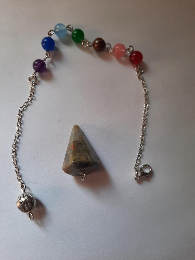 Маятник очень интересный, с виду качественный. Ставлю 3⭐ за то, что камень не натуральный как указано в описании. Заказывала лунный камень, но это пластик или типа какой-то смолы, имеет сбоку боковой "шов", как будто вылили в форму из 2 частей и соединили.
