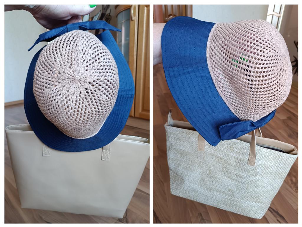 Сумка шла в одиночной посылке. Долго не высылали, но после отправки пришла за 34 дня. Мне досталась за 767 р. Сейчас стоит дешевле и за стоимость около 500-600 рублей купить ее можно. Пришла в аккуратном виде, полиуретановая часть без заломов, ручки тоже. Смята по линии сгиба донышка на вязаной (лицевой стороне). Я её ещё не гладила, сразу делаю обзор, но собираюсь паром пройтись по вязаной стороне. Размеры сумки совпадают с указанными продавцом. Имеется замок- молния, так что из сумки ничего не выпадет. Ручки пристрочены аккуратно и ровно. Внутри есть тряпочная подкладка, она не шуршит, но кармашков никаких нет. Сумку подбирала к летним головным уборам, цвет совпал. Долго выбирала себе сумку среди соломенных и плетеных, но поняла, что мне не нужны зацепки на платьях от фактурных сумок и ёмкость сумки хотелось " рабочую". Также выбирала, чтоб держала форму и имела донышко. И самое главное, чтоб можно было носить на плече. Мои запросы удовлетворены!!! Отсутствие кармашков выполнят косметички. А может сама пристрочу карманы с боков. Цена сейчас ей соответствует. При распаковке был едва заметный запах полиуретана, но быстро выветрился. Эту сумку легко декорировать различными бантами, тесемками, яркими лентами,чтоб 'подружить" ее с вашим гардеробом. Также я рассматриваю наклейки.