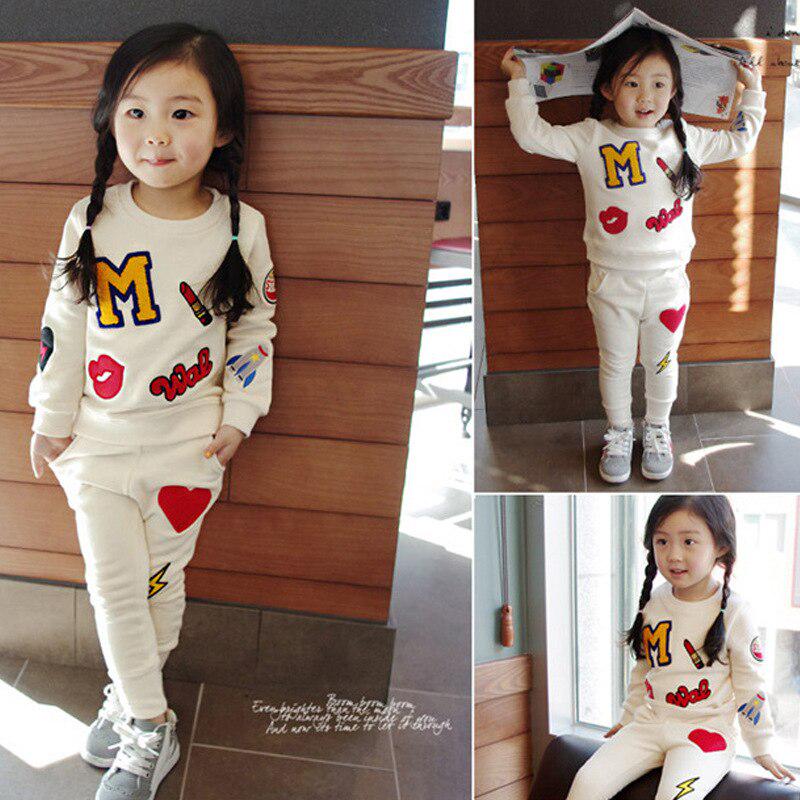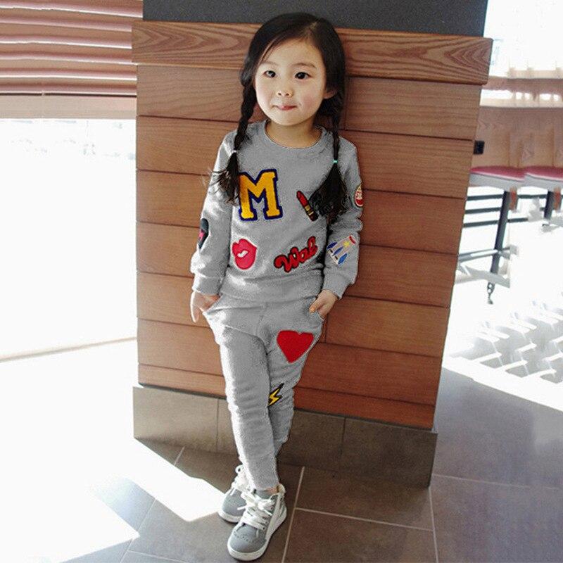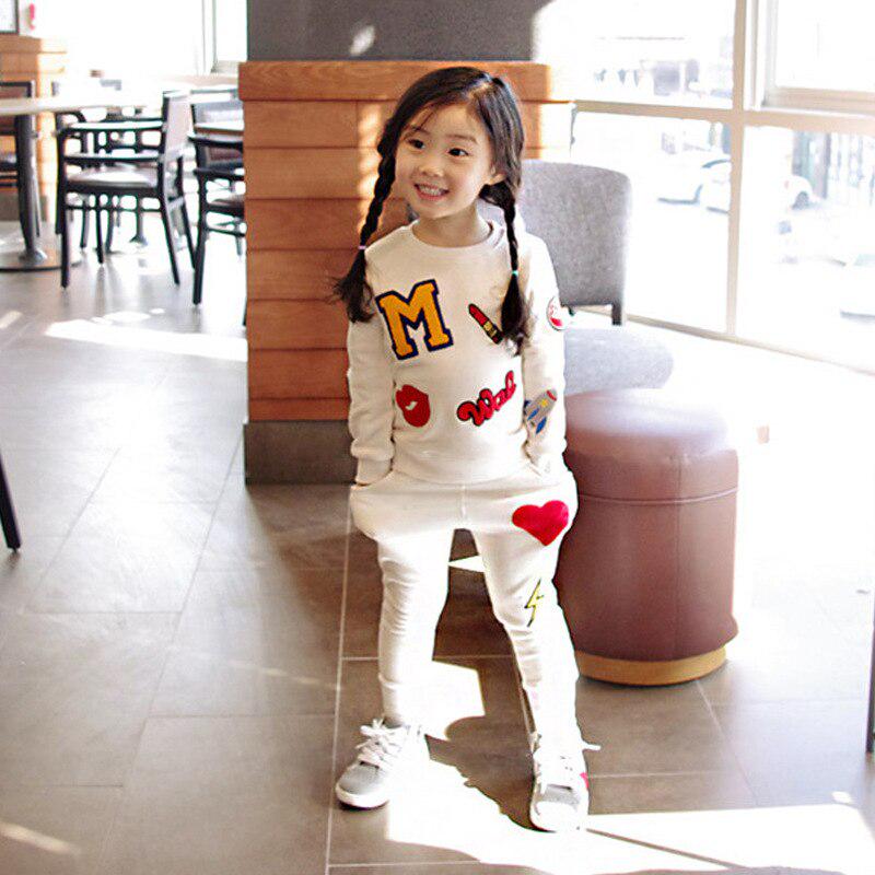 Осенние комплекты одежды для маленьких девочек Danmo, корейская хлопковая версия, свитер с круглым вырезом и длинными рукавами, брюки
