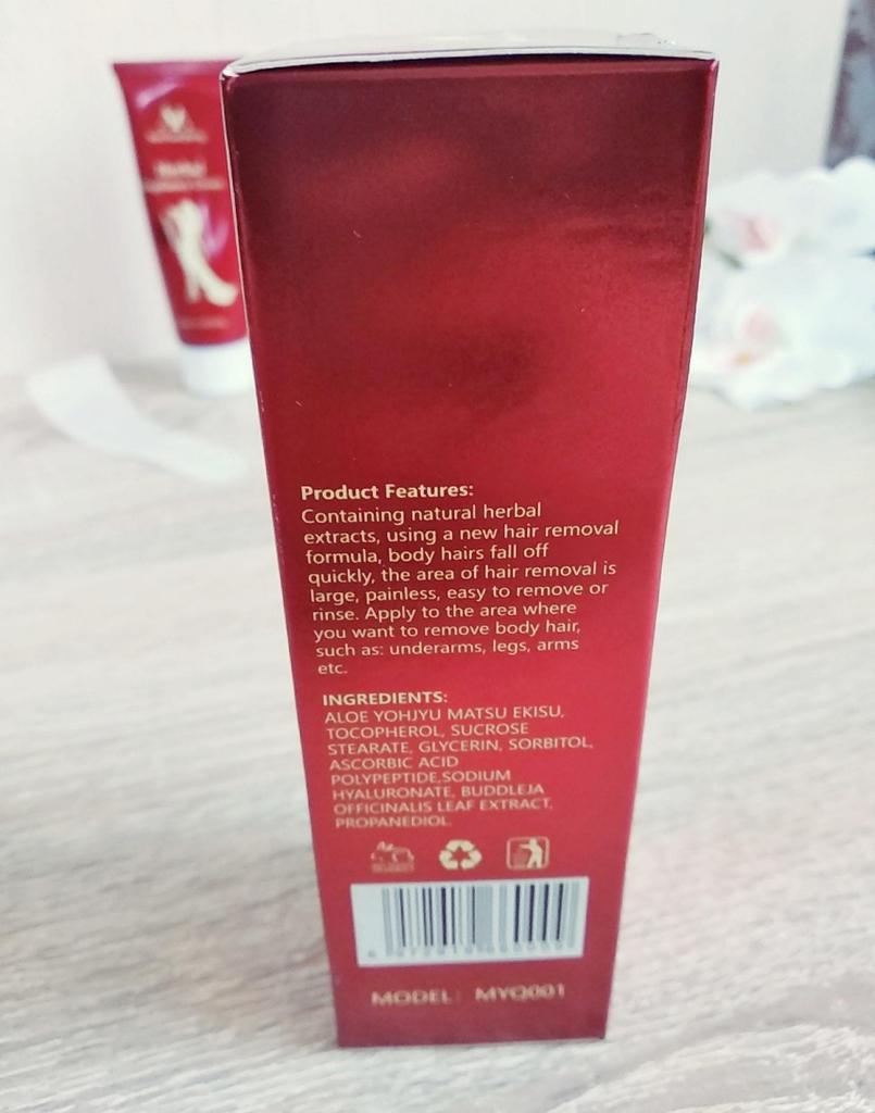 Крем для депиляции от MeiYanQiong. Крем белого цвета,не густой. Запах типичный для таких кремов. Состав: глицерин, экстракт алоэ, полипептид аскорбиновой кислоты,гиалуринат натрия,баулен лекарственный. Объем 40 гр. Очень маленький,но очень удобно брать с собой в поездки и путешествия. Подержать 10-15 мин,снять лопаткой и остатки смыть теплой водой. Такие средства нужно подбирать индивидуально и перед использованием проверьте нет ли аллергии. Запечатано в слюду и защитная фольга на тюбике. Срок годности до 2025 года. Покупкой довольна. И покупка повторная.