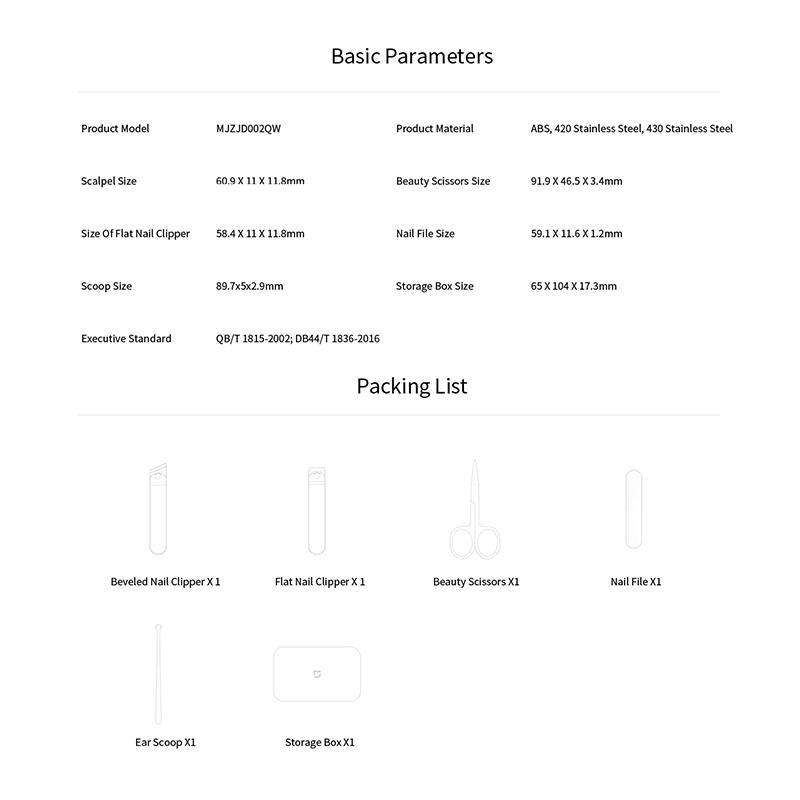 Xiaomi Mijia 5 в 1 набор кусачек для ногтей из нержавеющей стали, уход за педикюром, пилочка для ногтей, маникюр, портативная защита от брызг