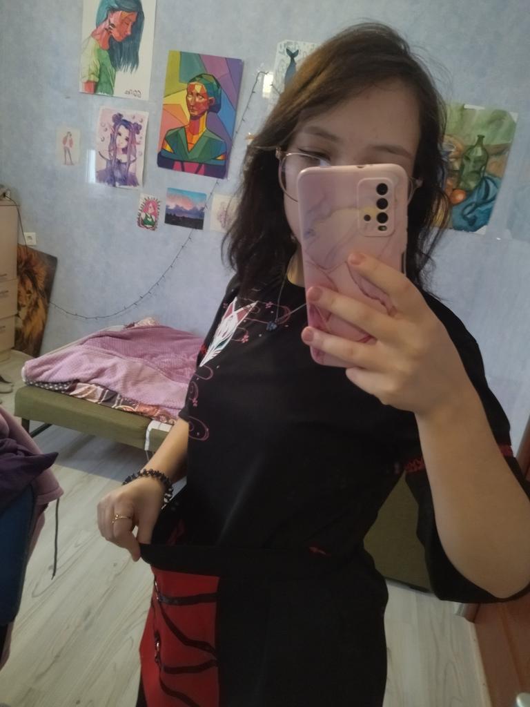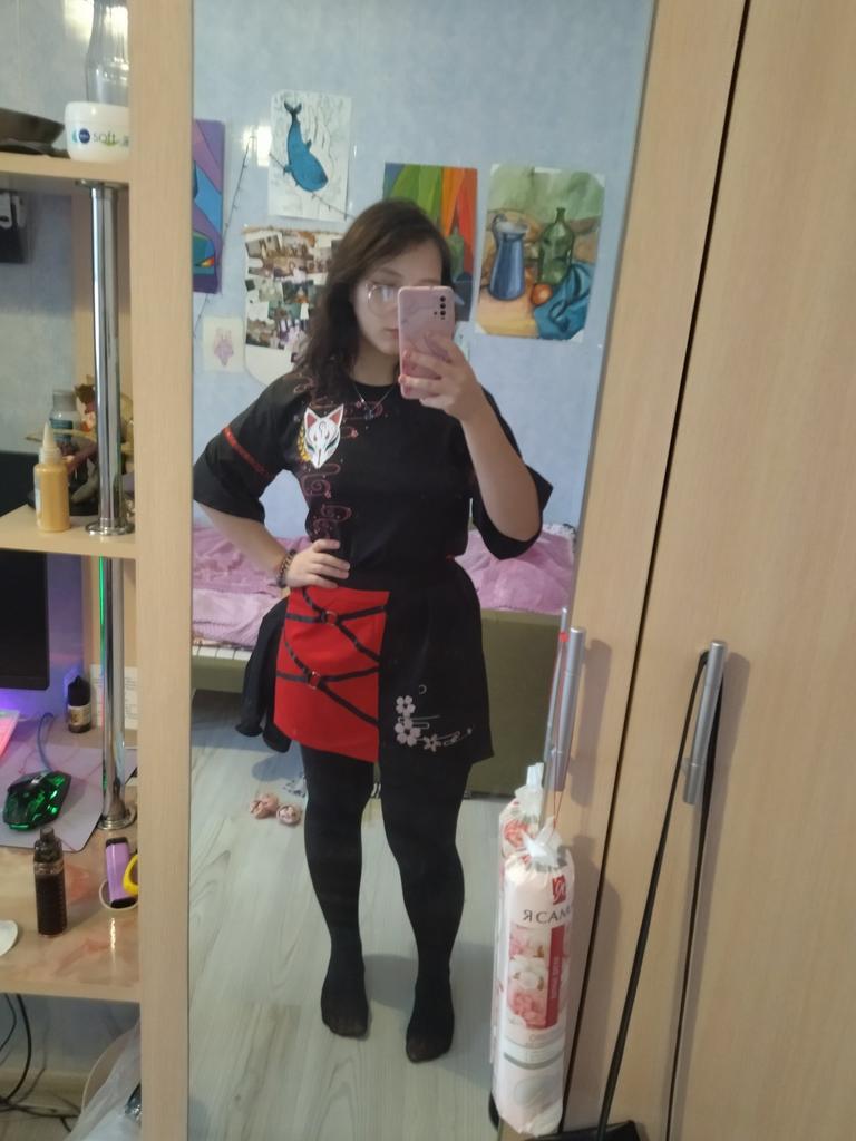 Футболка подошла, а вот юбка через низ не налазит, приходится через верх это не очень удобно, а так все нравится только нитки в некоторых местах торчат.