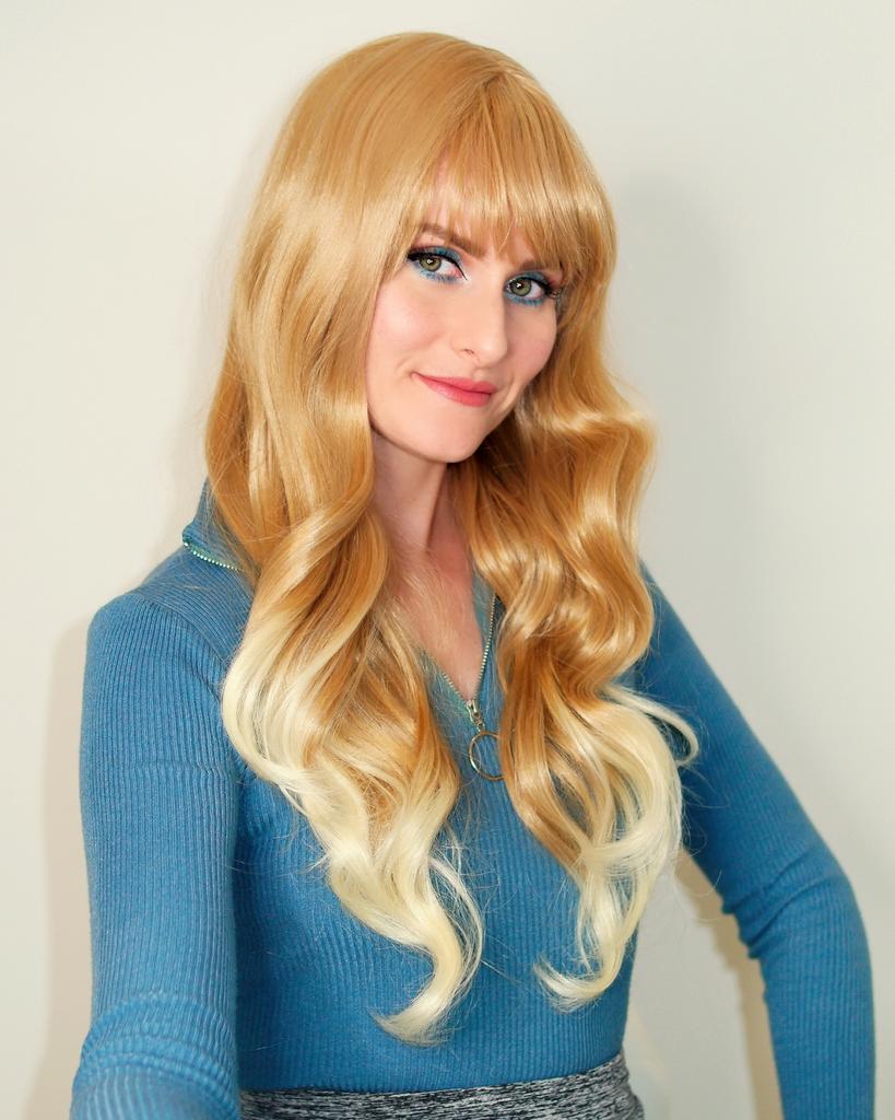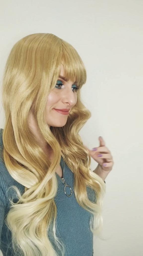 👩 Длинный светлый парик с чёлкой Парик очень длинный, концы доходят аж до талии. Он очень качественно сделан, и красивого цвета: вшиты волосинки разного цвета, но общий цвет выглядит как светло-пшеничный с белокурыми кончиками. Как и в случае с любым новым париком, при первом вычесывании будут выпадать волосы. Парик регулируются под любой объём головы, на затылке есть ремешки-регуляторы объема, так же есть и гребни спереди, чтобы закрепить парик особенно надежно на голове, но и без них парик может сидеть прочно. Чёлка длинная, каждый может подстричь её под нужную длину. Парик очень путается, как и путается любой длинный искусственный парик (чем длиннее парик, тем чаще нужна расческа). Парик очень понравился мне цветом, и в целом очень симпатичный, но у меня было так много париков, что я быстро замечаю те вещи, которые меня не очень привлекают. Итак, к минусам я отнесу укладку. Тут есть красивые волны ближе к концам, но центр выглядит странным, впрочем это можно исправить, если его подкрутить (это термо-волокно, можно немного греть, рекомендую для этого использовать термо-бигуди, а не плойку). Ещё я считаю, что концы какие-то крысиные, и как будто пересвеченные, и откровенно хочется их немного подрубить, чтобы они смотрелись "здоровее". На затылке может просвечиваться каркас под волосами, если волосы недостаточно ровно лежат, но так бывает со всеми гладкими светлыми париками. И ещё одно замечание у меня к блеску волос: мне кажется блеск слишком выдаёт искусственность. Но, я думаю я сделала замечательные фотографии, и именно для фото и видео я бы рекомендовала данный парик. Если нужно что-то натурально выглядящее - то этот парик не про это. Для косплеев, вечеринок, фотосессий пойдёт, но не думаю, что на большее. Я так же заказала этот парик в другом цвете (каштановый), и другой цвет значительно больше меня порадовал, и более натуралистичнее выглядит.