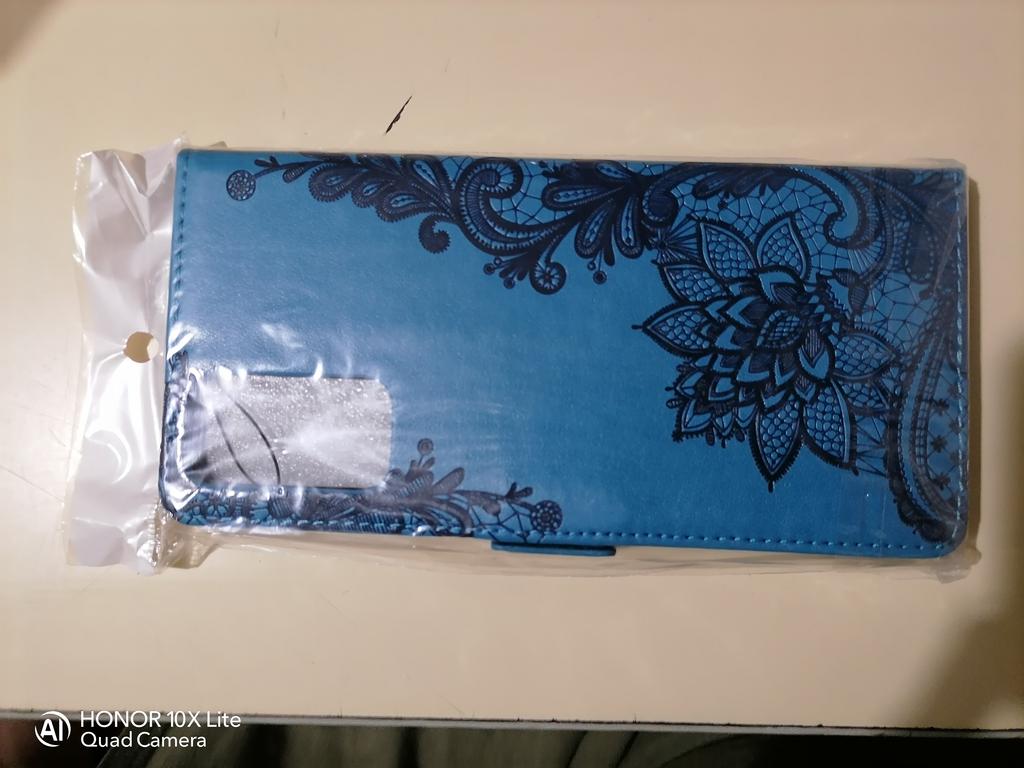 Одна из немногих посылок за последние месяцы, которая дошла, остальные застревали в Новосибирске навечно. Чехол красивого сине-бирюзового цвета, как будто реально с кружевом. Есть 3 отделения для карт. Единственный недостаток (лично для меня) - телефон стал казаться больше, вокруг жёсткого футляра ещё края. Но для большинства, я думаю, это не критично