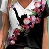Женская футболка с рисунком кота, базовые топы с V-образным вырезом и геометрическим принтом кота