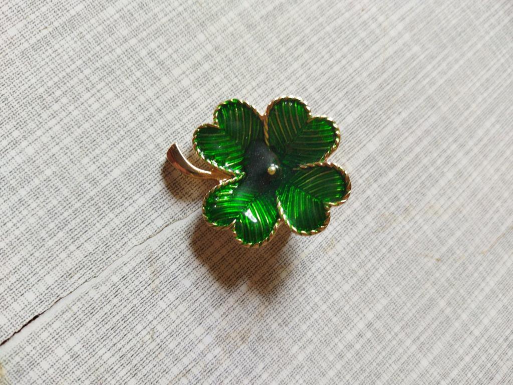 брошь листочек клевера, красивая, благородная, тяжеленькая, эмаль прокрашена равномерно, красивый зеленый насыщенный цвет. Благадарю продавца, спасибо Джуму.