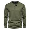 AIOPESON футболка с воротником-хенли из 100% хлопка, мужская повседневная однотонная футболка с длинными рукавами, мужские новые осенние мужские футболки высокого качества