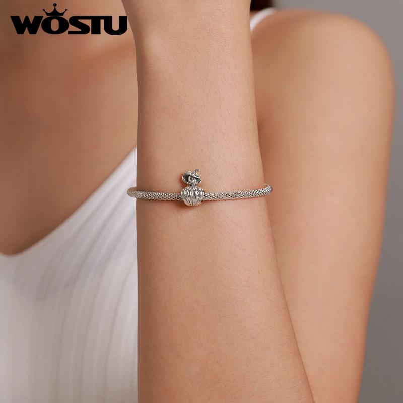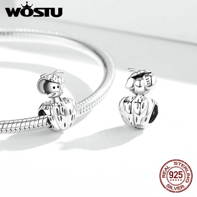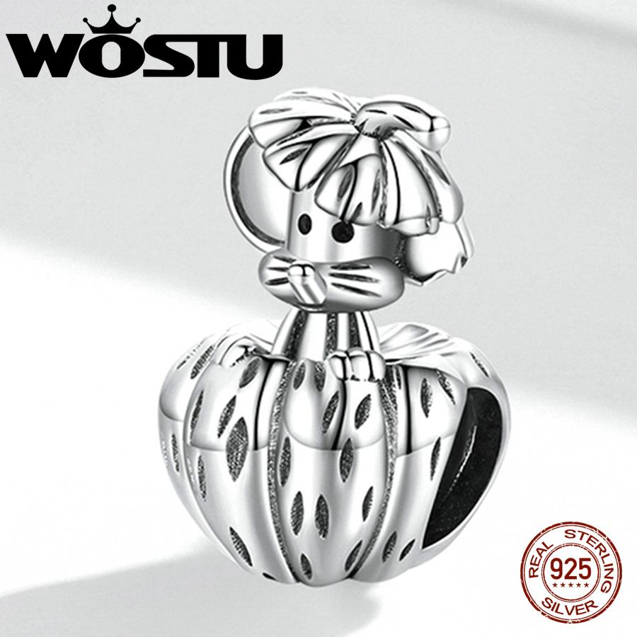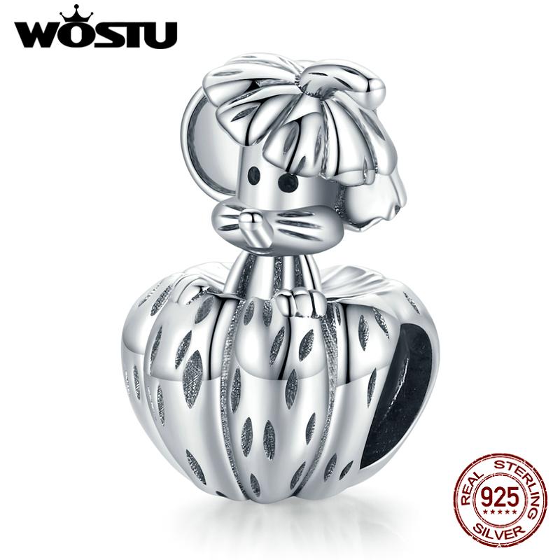 WOSTU Очаровательные бусины из стерлингового серебра 925 пробы Naughty Little Mouse & Pumpkin подходят для оригинального браслета, подвески, ювелирные украшения