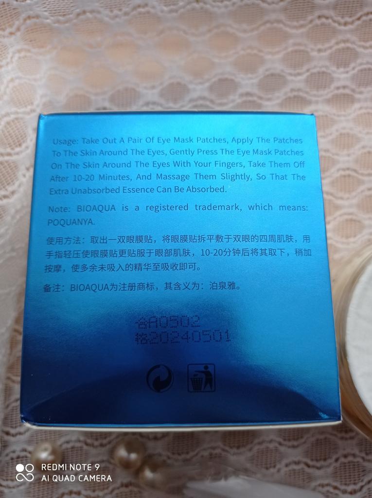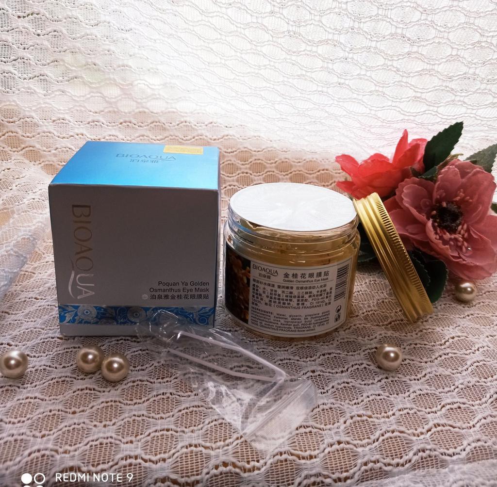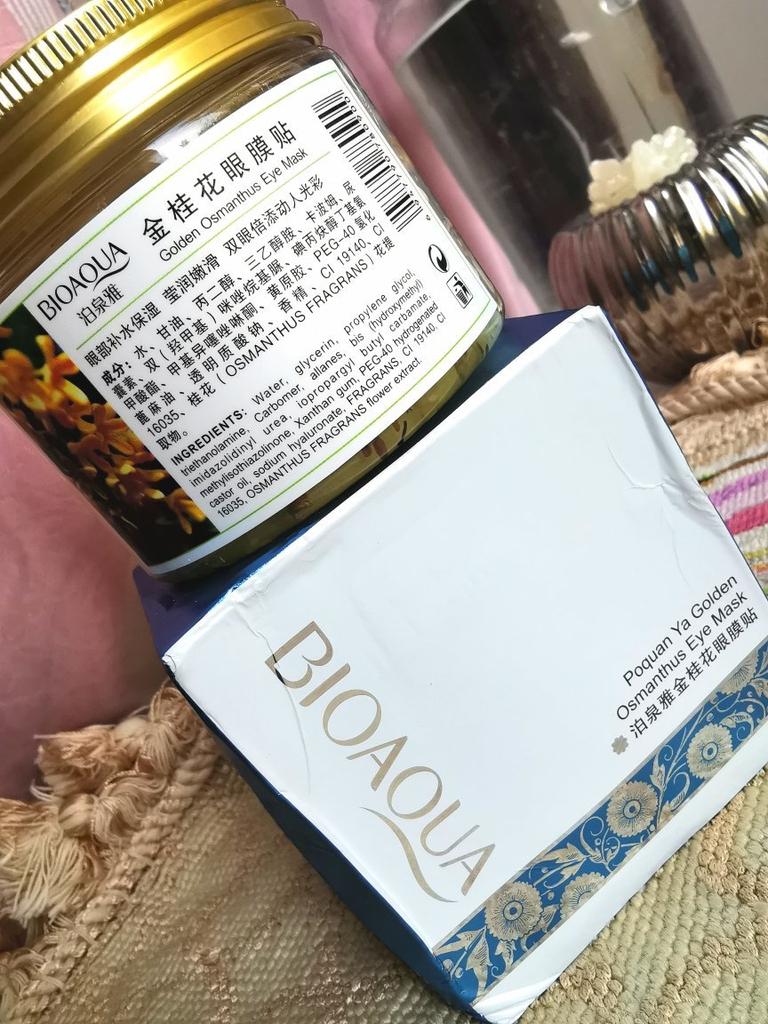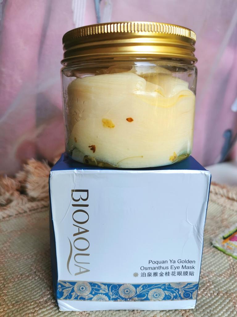 Коробочка немного помялась, но внутри не ничего не пострадало. Прилагаю перевод с коробочки. -------- BIOAQUA Маска для глаз с золотым османтусом Маска для глаз с золотым османтусом Увлажнение и увлажнение области вокруг глаз Восполняет воду, увлажняет, увлажняет и разглаживает, помогает улучшить сухость кожи вокруг глаз. Экстракт, он может пополнить влажность кожи глаз, увлажняют кожу глаз, делают кожу глаз влажной, гладкой и деликатный. Увлажняющий, увлажняющий, сияющий и гладкий, помогающий улучшить обезвоживание и сухость кожи вокруг глаз. Содержит экстракт золотого османтуса. Возьмите, восполните влажность кожи глаз, увлажните кожу глаз, пополните влагу, сделайте кожу глаз увлажненной Гладкая и нежная. Состав: вода, глицерин, пропиленгликоль, триэтаноламин, Карбомер, алланы, бис(гидроксиметил)имидазолидинилмочевина, лопропаргилбутилкарбамат, метилизотиазолинон, ксантановая камедь, Гидрогенизированное касторовое масло Peg-40, гиалуронат натрия, ароматизаторы, Ci 19140, CI 16035, экстракт цветков османтуса душистого. -------- Пока не пробовала, потом дополню) огромное спасибо продавцу 😃