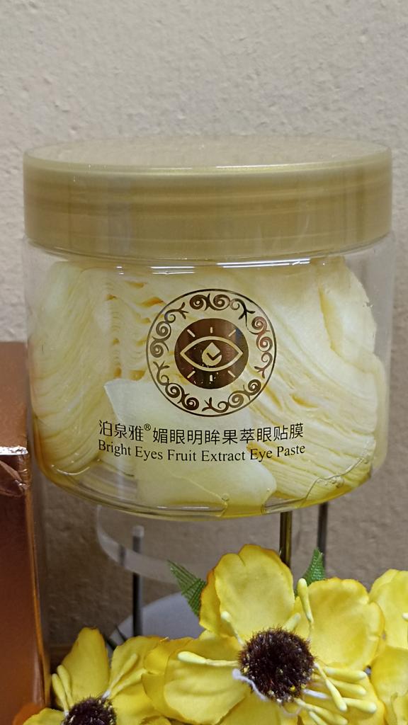 Тканевые патчи для глаз с экстрактом золотого османтуса,80 шт. Аккуратная упаковка. Патчи в большом количестве геля с приятным запахом, который содержит не только экстракт золотого османтуса,но и экстракт гамамелиса, касторовое масло, гиалуроновую кислоту, протеины овса... Патчи наносим на очищенную кожу на 15-20 минут. Применимы для носогубных складок, лба, шеи.. Кожа после применения свежая, сияющая и увлажнённая. Разглаживаются мелкие морщинки, снимается отёчность, есть лифтинг и осветляющий эффект. Для удобства использования патчей, их можно разрезать пополам. Храним в холодильнике. Обожаю эти патчи, заказываю не в первый раз. Доставка в сборной посылке, 1,5 месяца, упаковка хорошая, продавцу спасибо за качественный товар.