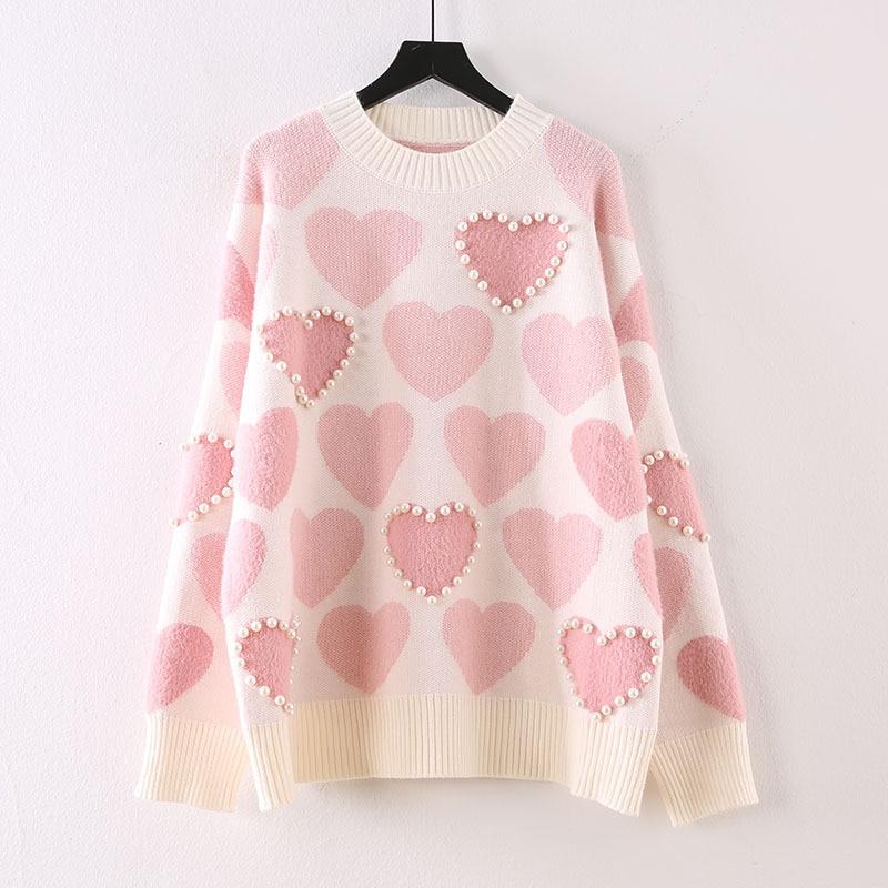 2021 сладкий свитер в консервативном стиле, осенне-зимняя одежда, женские модные новые пуловеры, вязаные женские топы с круглым вырезом и бисером, свободные — купить товар онлайн с бесплатной доставкой по всему миру!